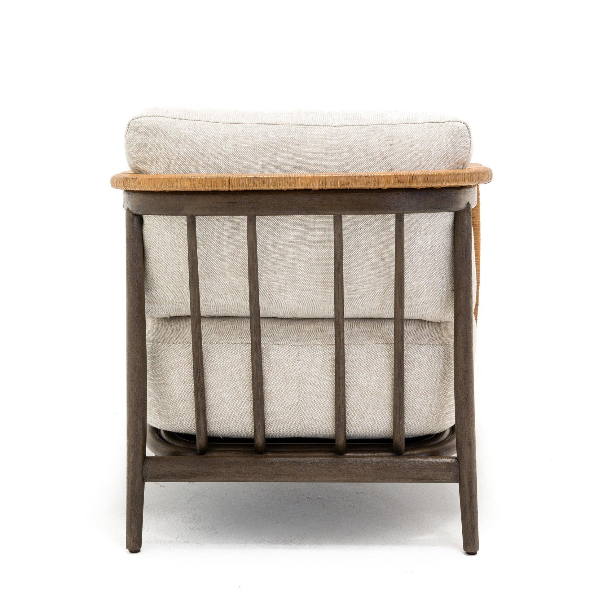 The Lily Lounge Chair features a hardwood frame, and legs with pole rattan in a brown finish accented with wrapped natural rattan peel. The chair comes with a loose seat and back cushion.