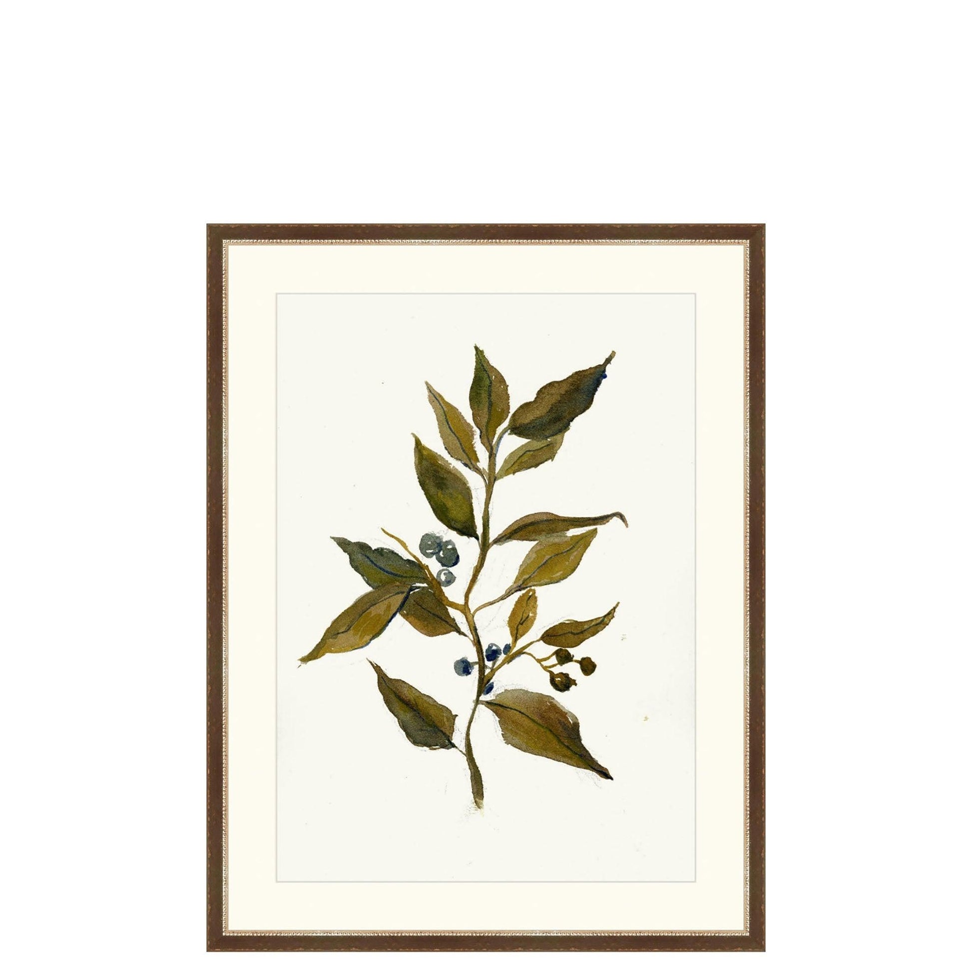 Le dessin de la branche est réalisé dans une palette de couleurs marron et vert olive.