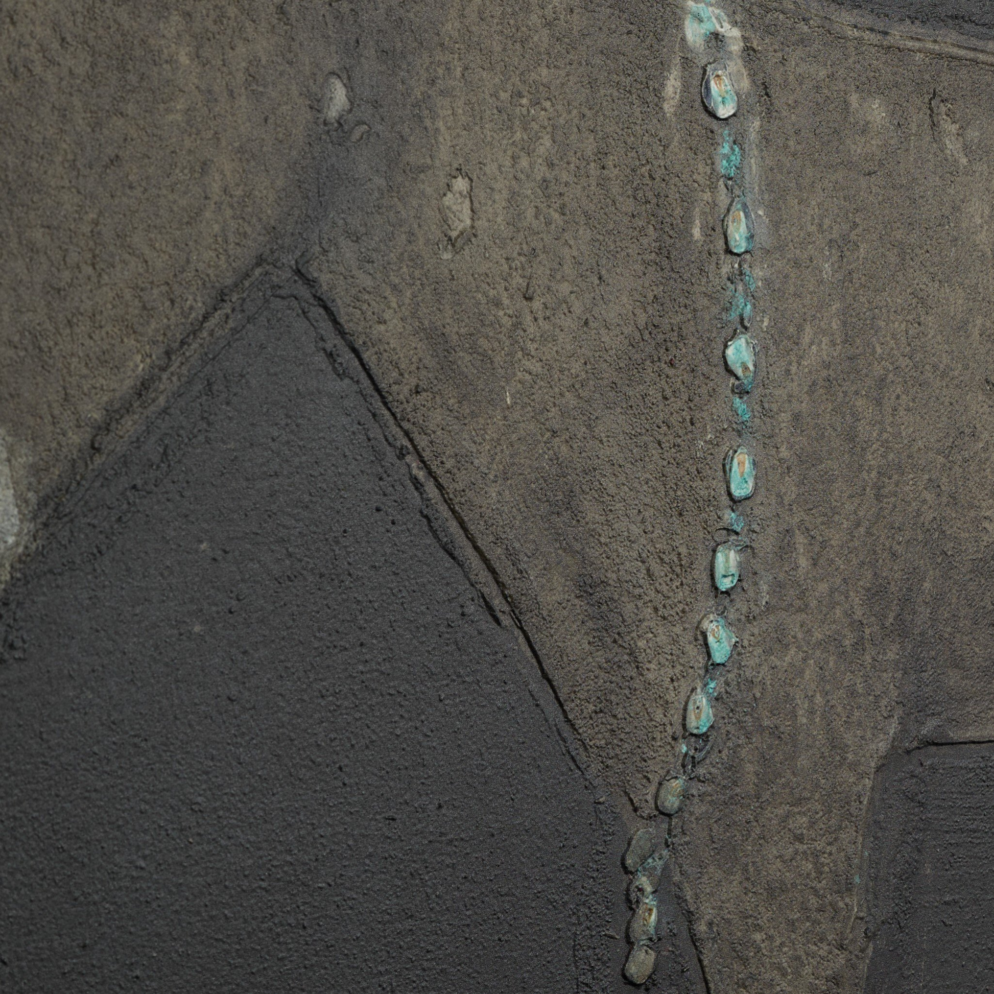 « Burro Noche » présente un portrait serein et saisissant d'un âne orné d'un collier turquoise sur fond sombre. Les tons riches et terreux ainsi que le design minimaliste évoquent une impression de force tranquille et de beauté délicate, apportant une présence unique et paisible à n'importe quel espace.
