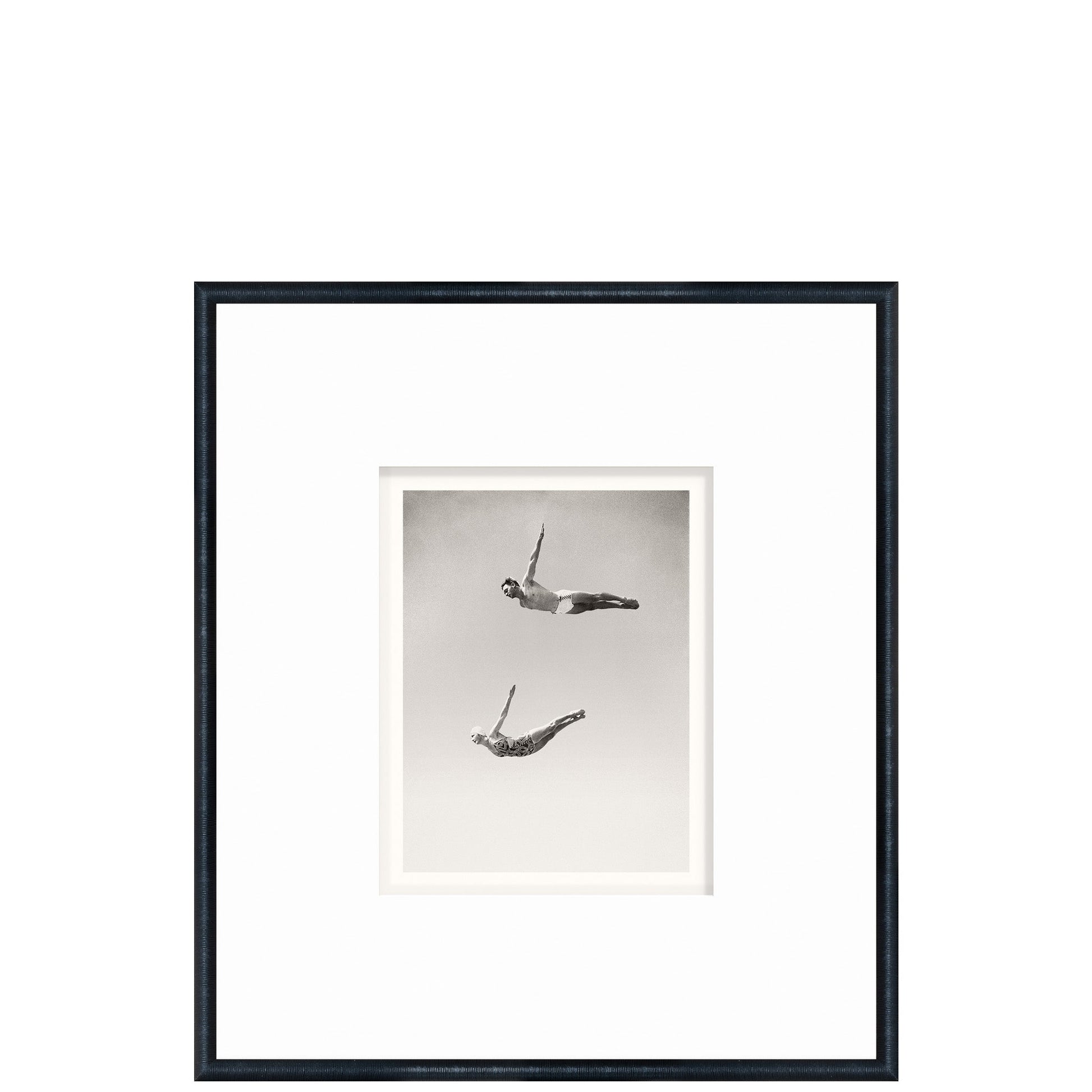 Plongez dans le passé avec notre collection Nostalgie - Photo vintage encadrée d'un duo de plongeurs. Datant d'environ 1938, cette photo vintage présente deux plongeurs en pleine action, capturant un instant figé dans le temps.