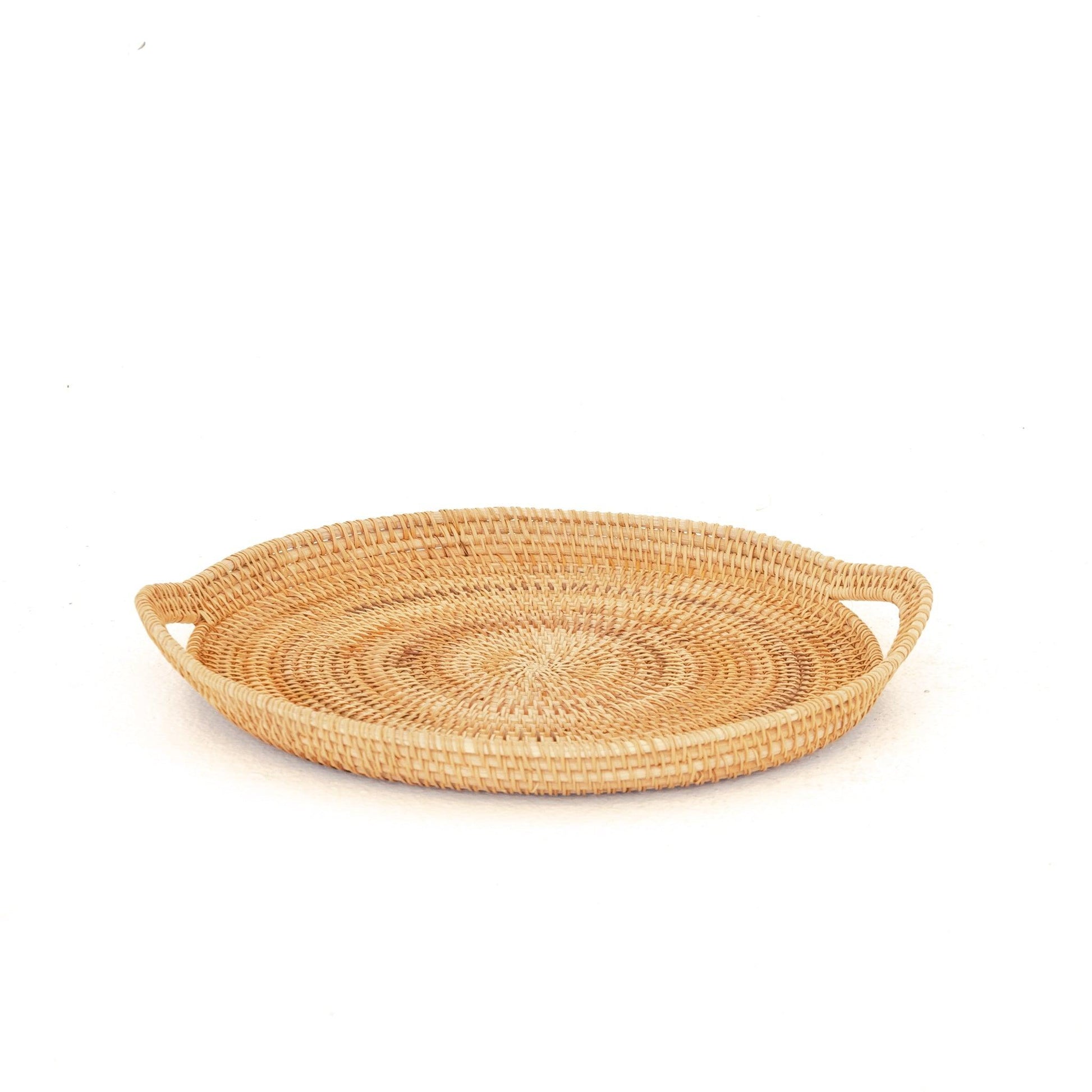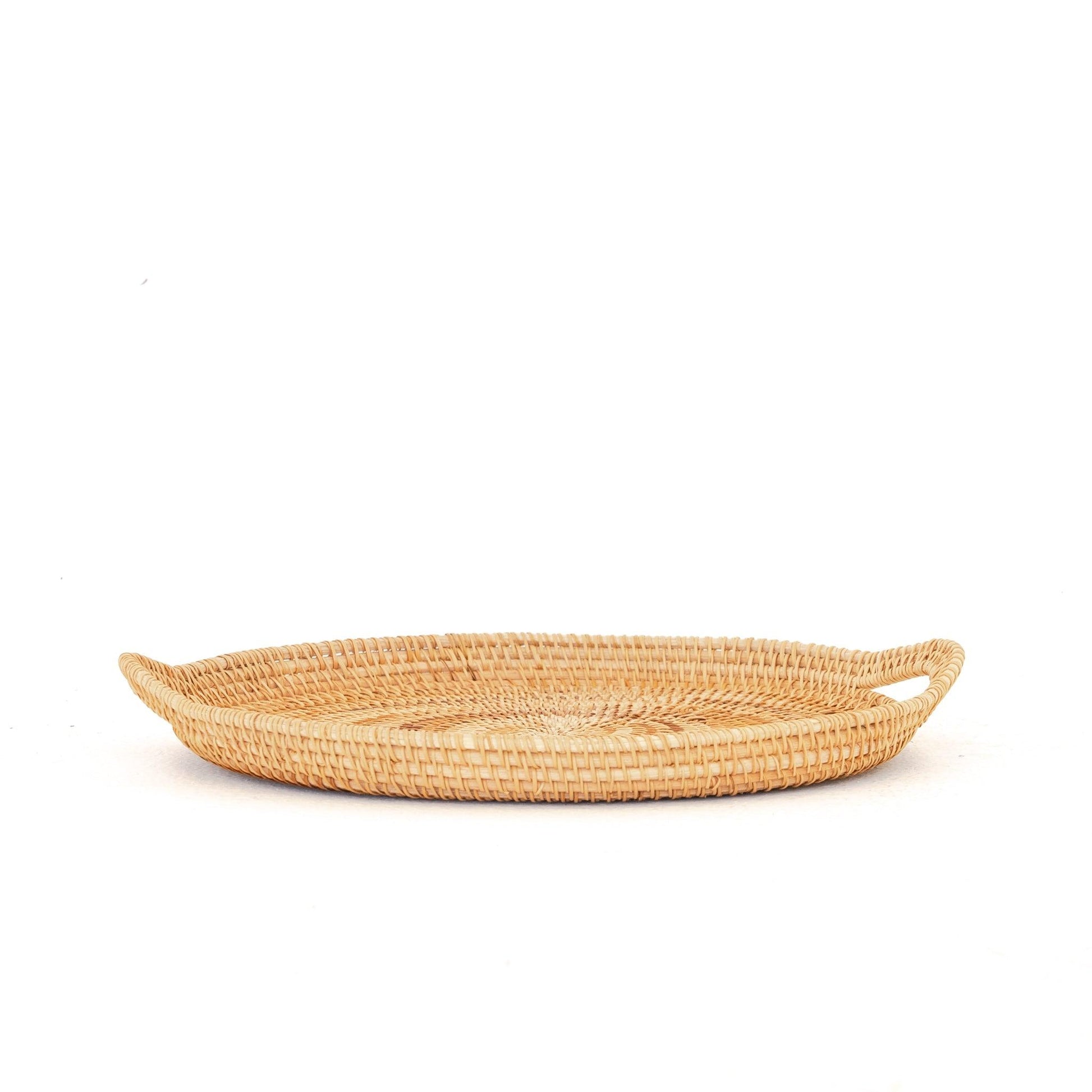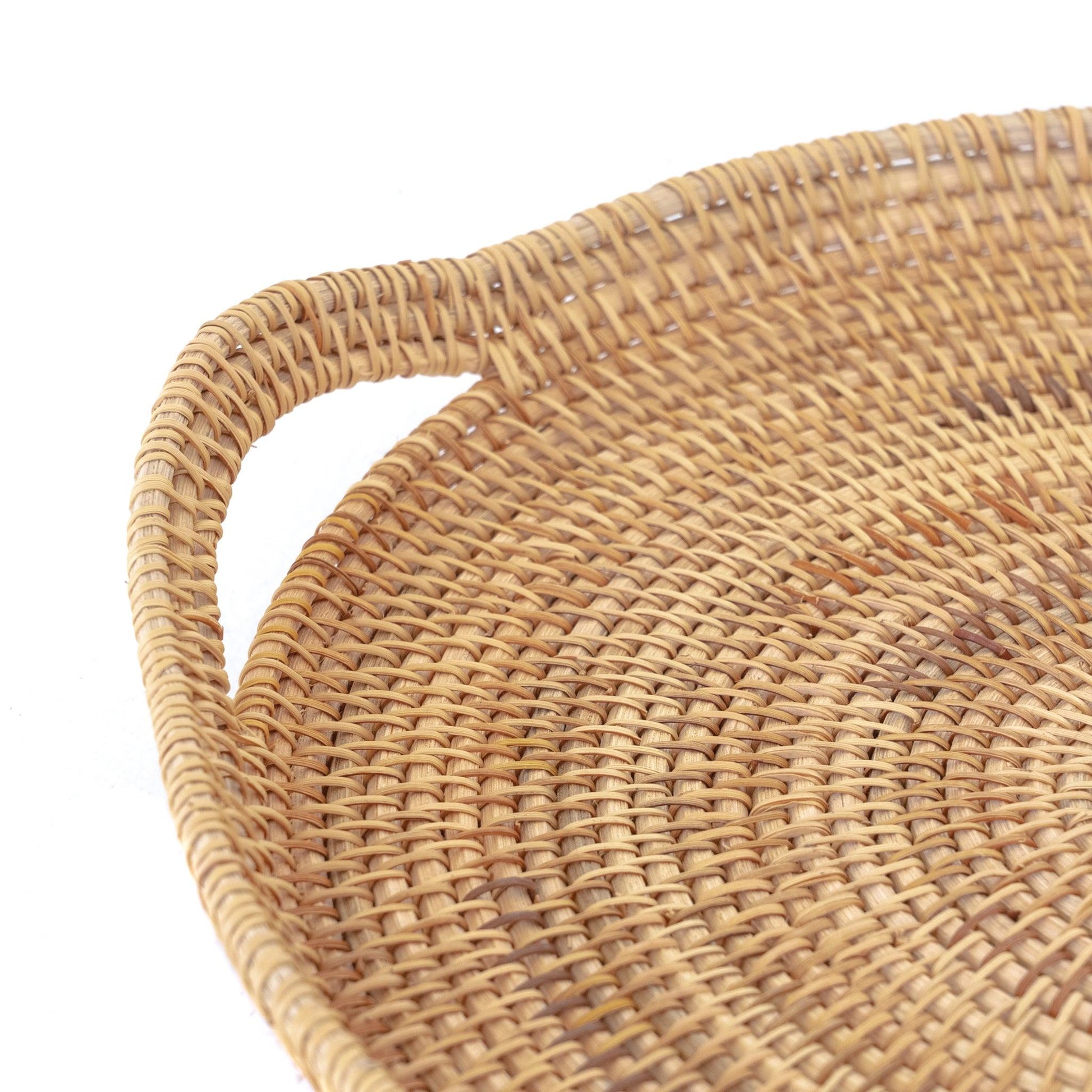 Le tissage naturel de notre plateau Kayla offre une base texturée pour de nombreuses compositions stylistiques, et les poignées fonctionnelles permettent de le déplacer et de le placer facilement.