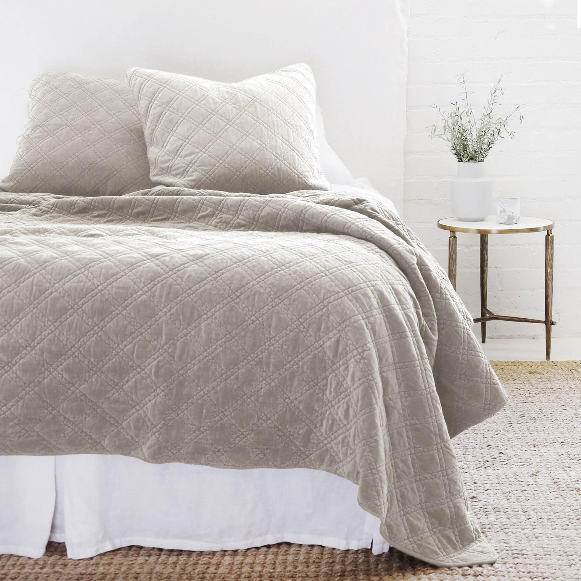 Une ligne somptueuse et sophistiquée, avec un motif en losanges matelassés sur le devant, confectionnée en velours de coton 100 % lavé à la pierre.