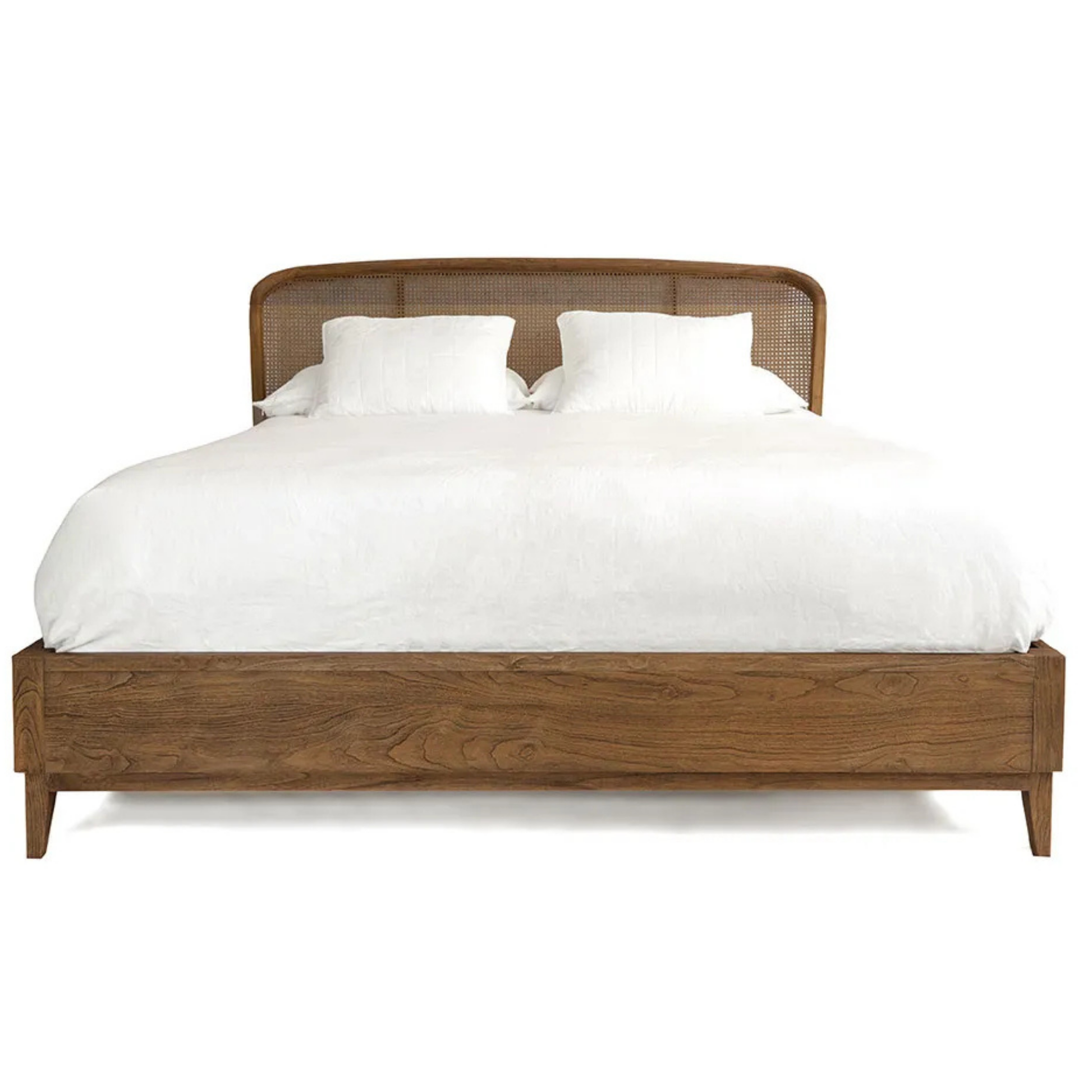 Le lit Mira dégage chaleur et subtile élégance avec sa tête de lit en osier tressé, légèrement incurvée, et son cadre en bois conique. Son fini naturel et ses détails artisanaux créent une atmosphère d'élégance décontractée, idéale pour créer un havre de paix. Un mélange intemporel de confort, de texture et de simplicité raffinée.