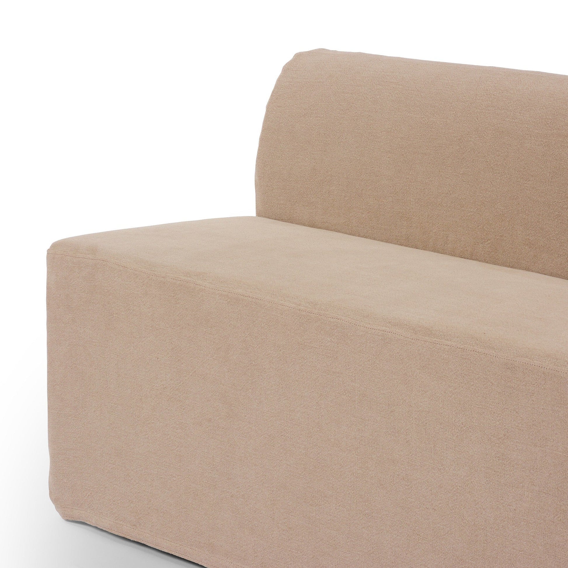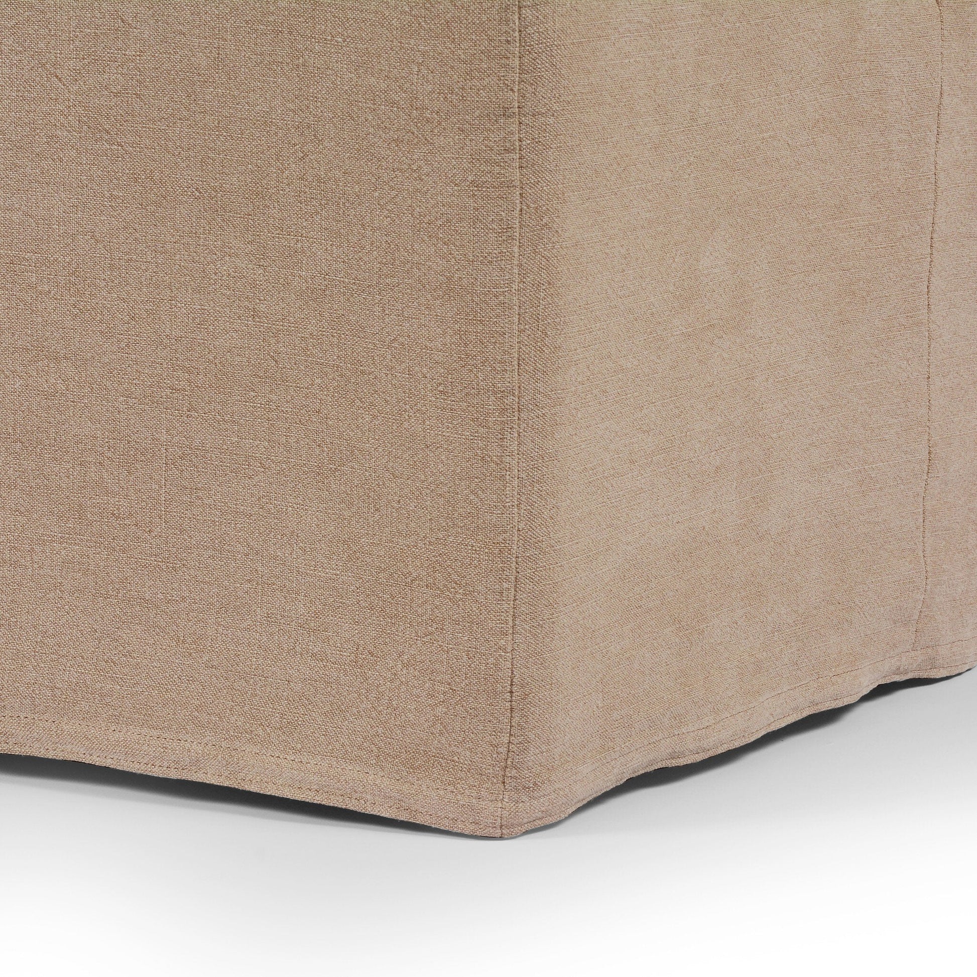 Une forme sculpturale aux lignes épurées et des accoudoirs surdimensionnés en forme de dôme. Le banc de salle à manger Neem à housse amovible, grâce à sa construction rigoureuse, permet d'envelopper entièrement la pièce d'une housse entièrement amovible et lavable en machine. La housse est fabriquée à la main à partir d'un mélange naturel et résistant de 100 % lin ; elle se fixe au cadre avec du Velcro pour un ajustement plus précis.