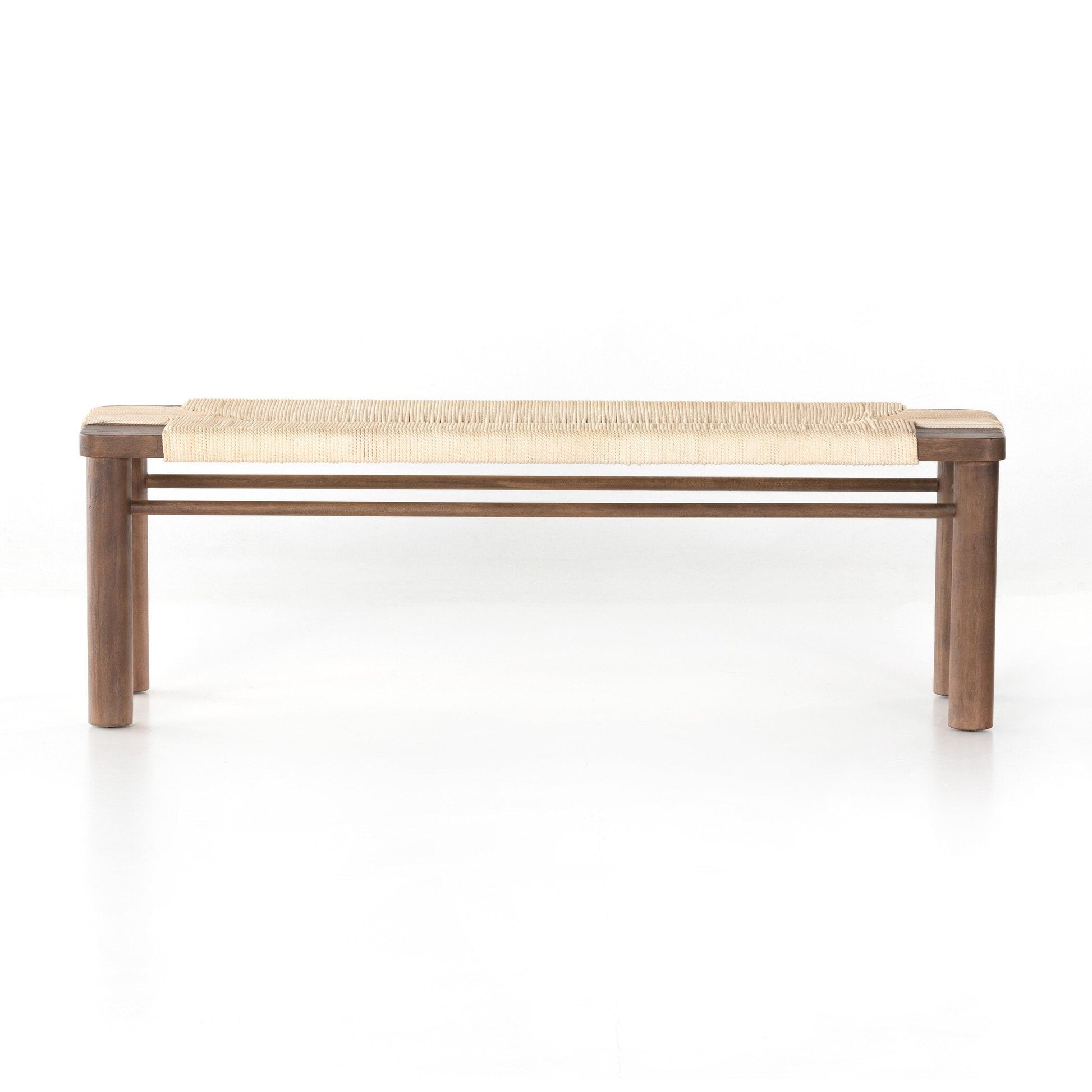Natural in texture and tone. Russet mahogany framing strikes a low-profile pose as vintage cotton rope weaves for an ultra-organic seat reflective of its Indonesian roots.