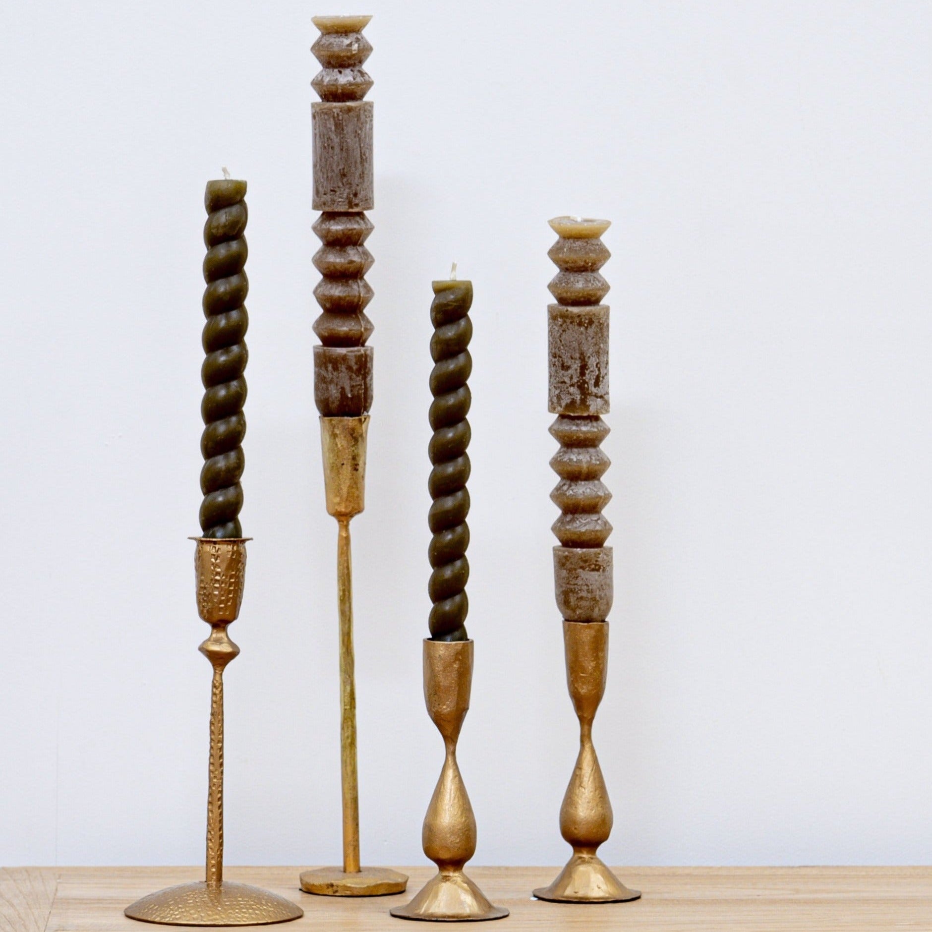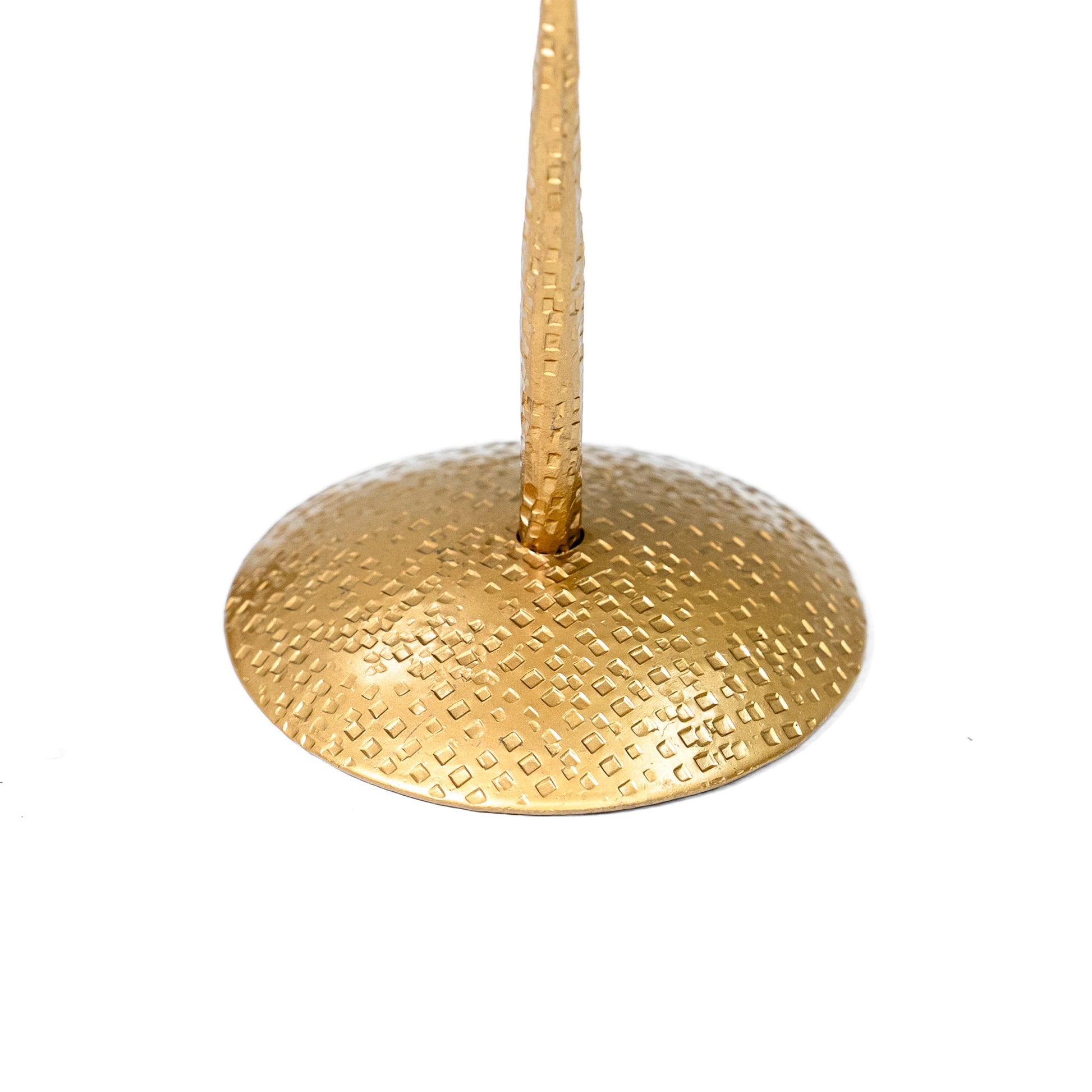 Optez pour un look sophistiqué avec le porte-bougies conique en métal forgé à la main Florence. Ce porte-bougies décoratif en métal forgé et martelé possède un fini en laiton antique. Son design présente des motifs détaillés qui ne manqueront pas d'attirer le regard. Que vous souhaitiez créer une harmonie ou stimuler votre créativité, ce modèle est le choix idéal.