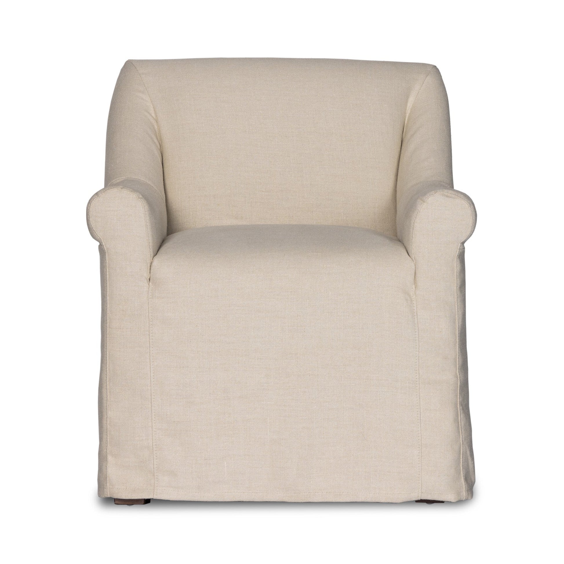 Installez-vous confortablement dans le fauteuil de salle à manger Leon à housse amovible, avec ses accoudoirs galonnés et son drapé décontracté. Les linons belges de Libeco™ sont fabriqués artisanalement et 100 % naturels. Les housses amovibles sont entièrement amovibles et lavables en machine pour un entretien facile.