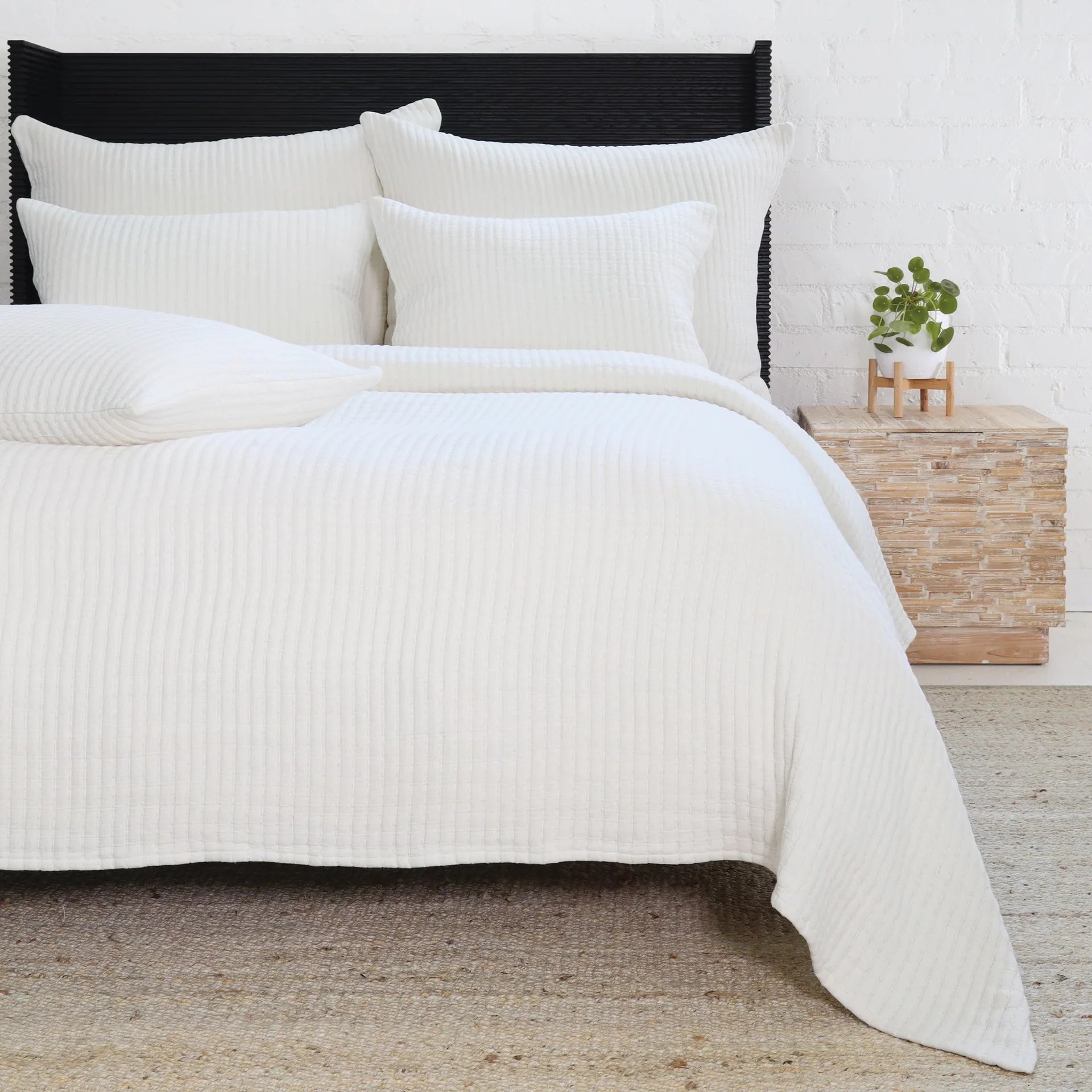 Enhance your bed with the Vancouver Coverlet, a lightweight gauze layer with interwoven stripes for textured interest. Its stonewashed cotton and neutral stripes create a relaxing, natural vibe.