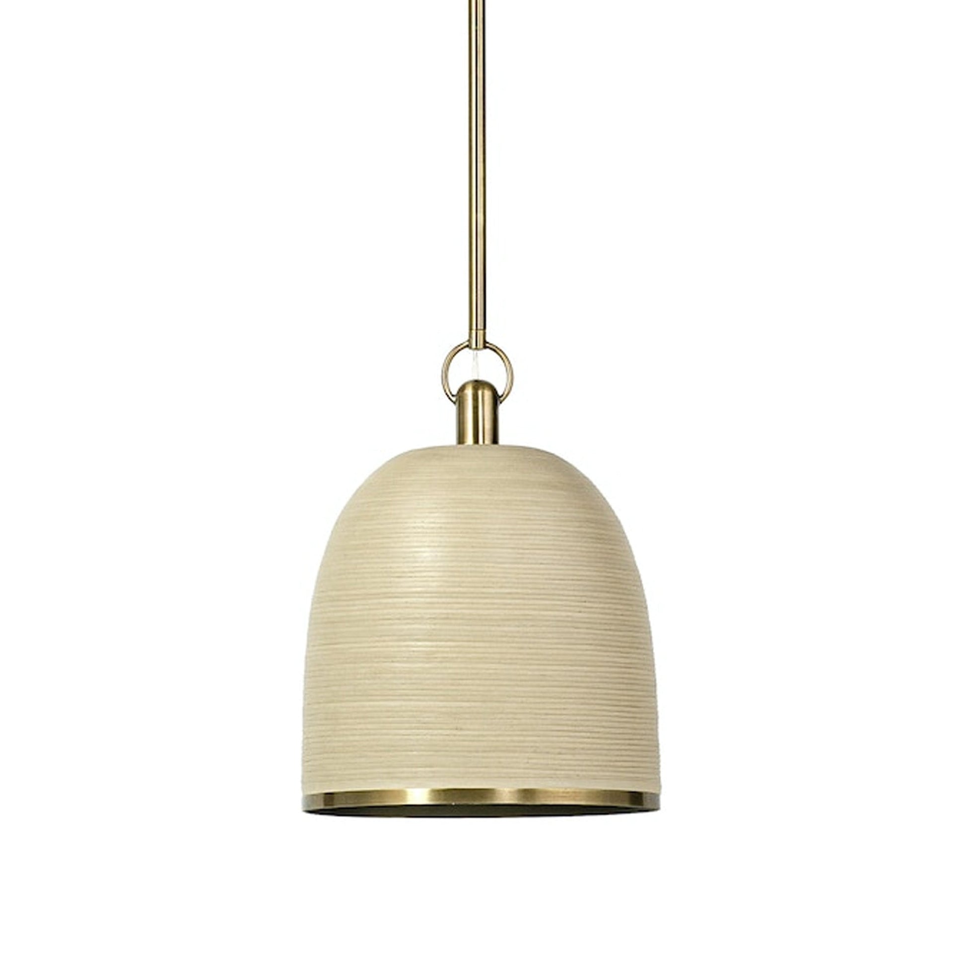 Illuminate your space with the warm and inviting glow of the Rivoli Leather Pendant Light. With its hand-woven leather shade and antique brass accents, this stunning piece of lighting exudes natural and organic beauty.