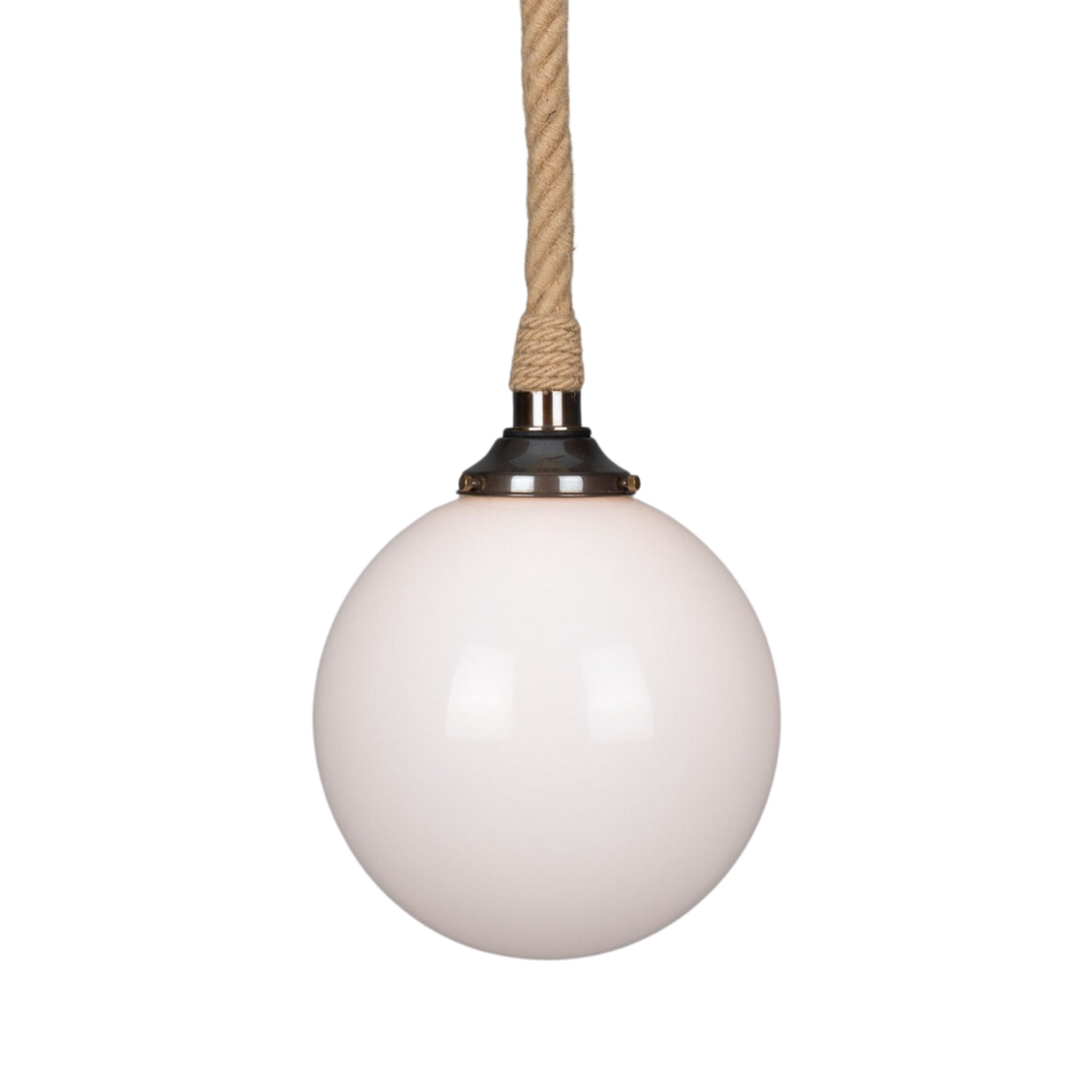 La suspension en corde de jute Ayon avec globe en verre opale offre un charme décontracté et côtier avec une touche d'élégance rustique. Suspendue à une corde de jute naturelle, la douce lumière du globe en verre opale crée une atmosphère chaleureuse et accueillante. Son design intemporel et ses matériaux organiques apportent style et chaleur à votre intérieur.