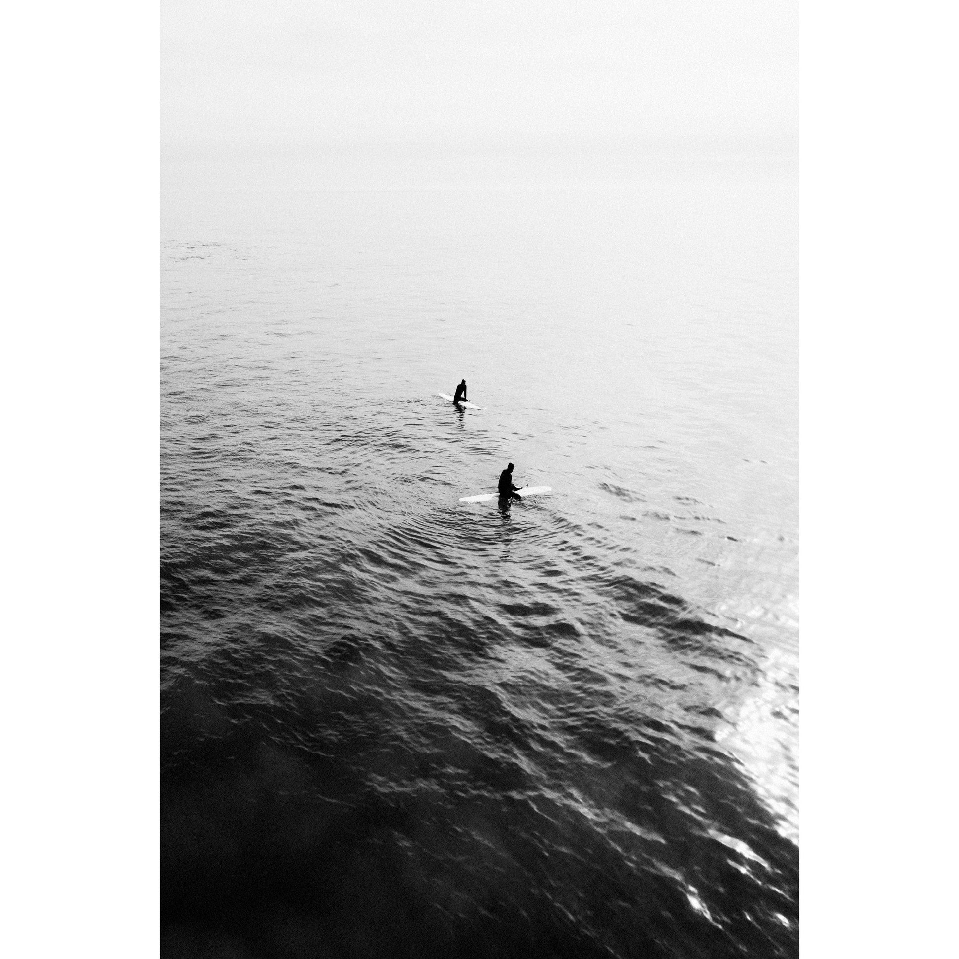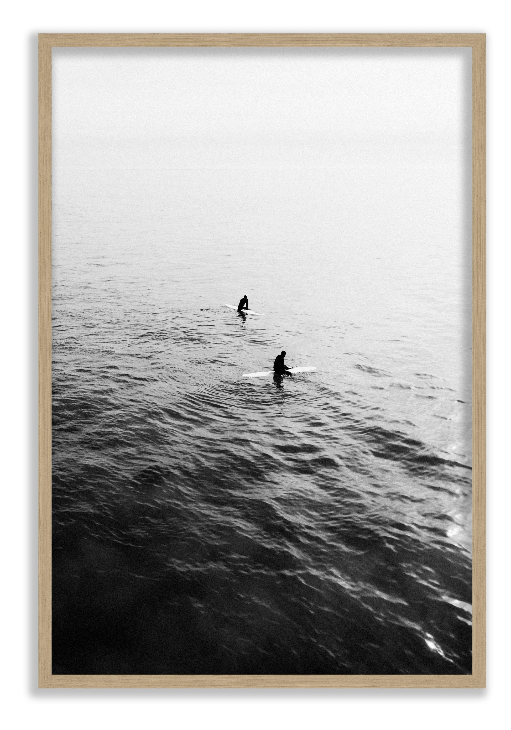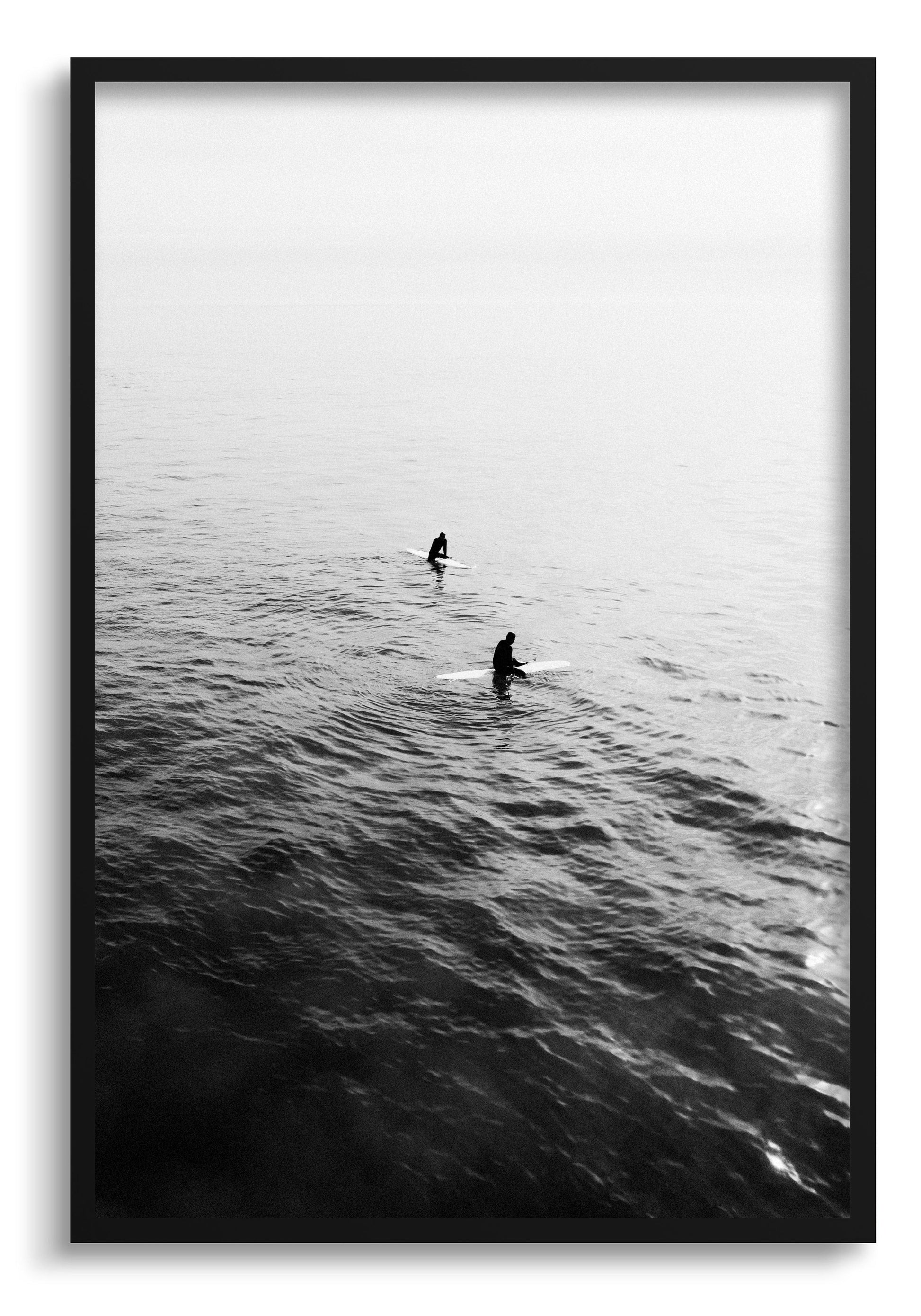 The Waiting's black and white print feels easy and subdued, while the composition is on the verge and teeming with energy—the perfect combo for a conversation-starting piece.