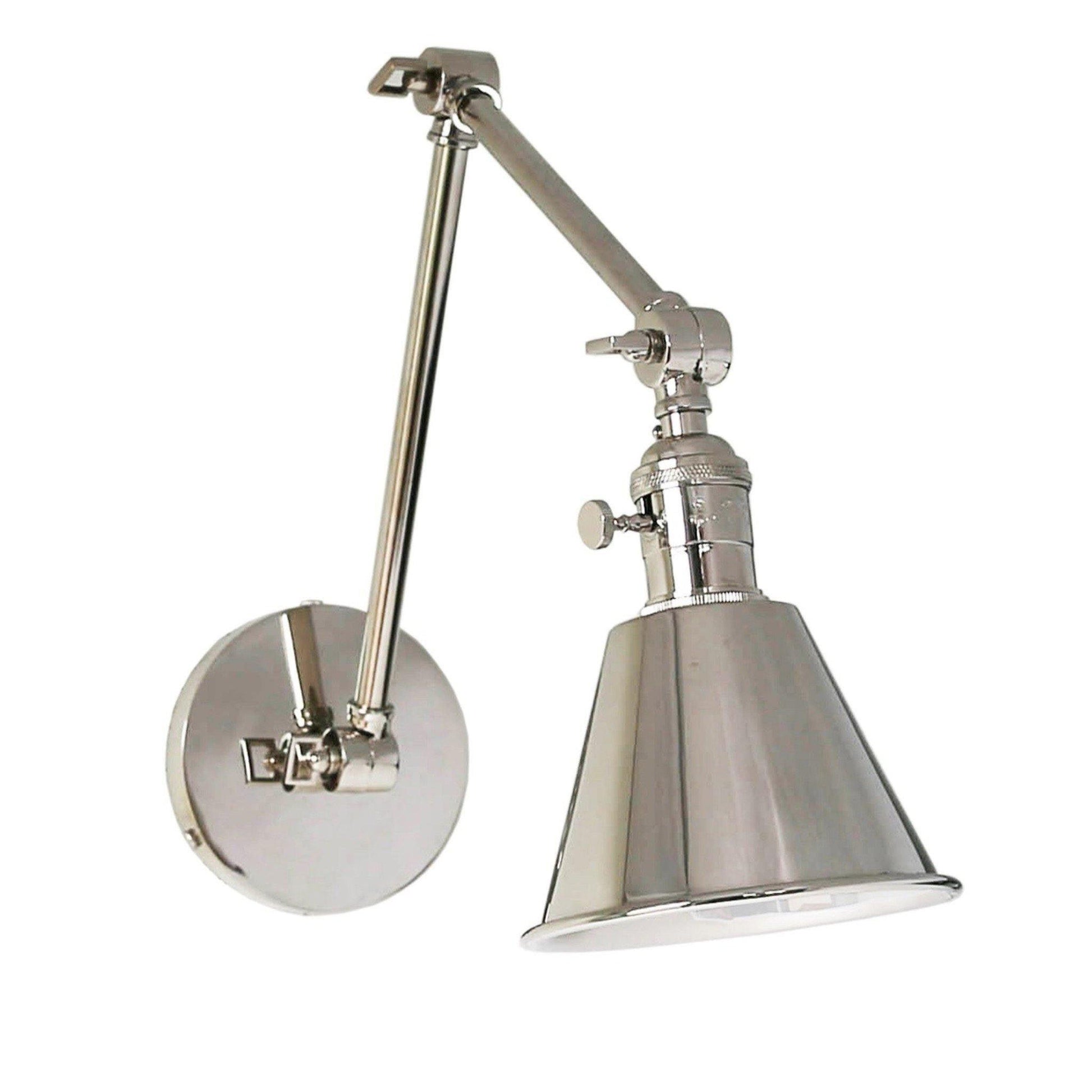 The articulating arm of the Jamestown sconce is perfect for directional lighting that can change with your needs. Its sleek finish and conical shade make a subtle statement when mounted on any wall.
