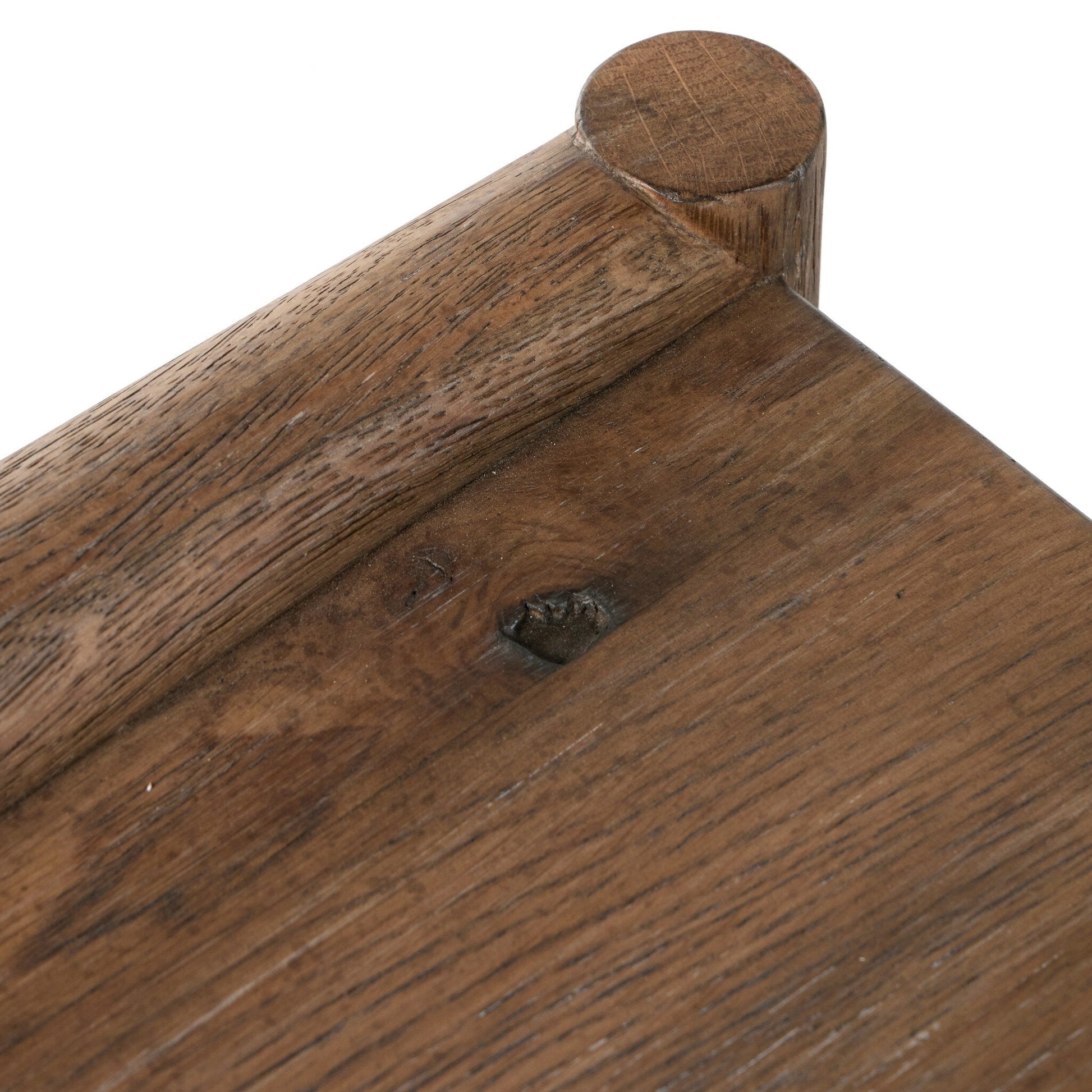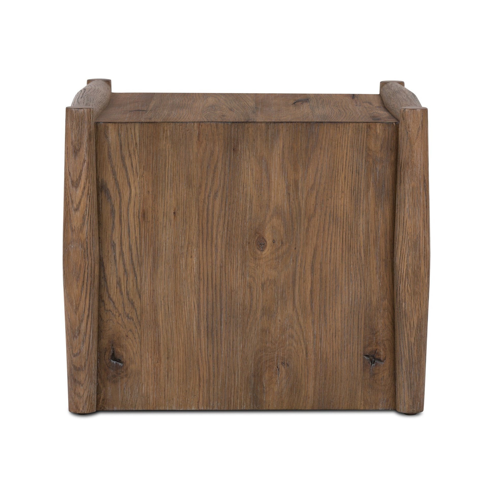 Traditional, reimagined. Made from rustic weathered oak, a simply structured end table brings a streamlined look to the living room.