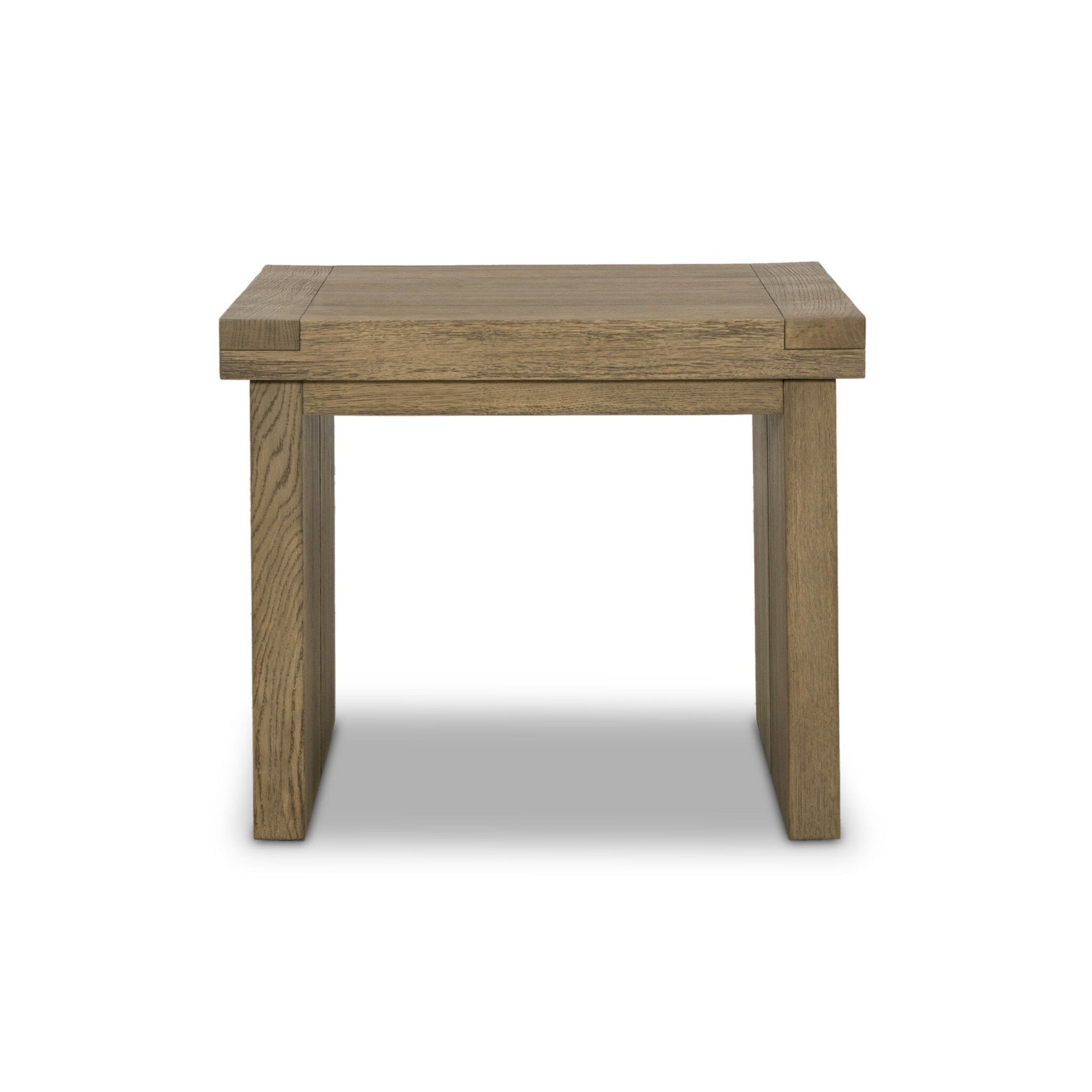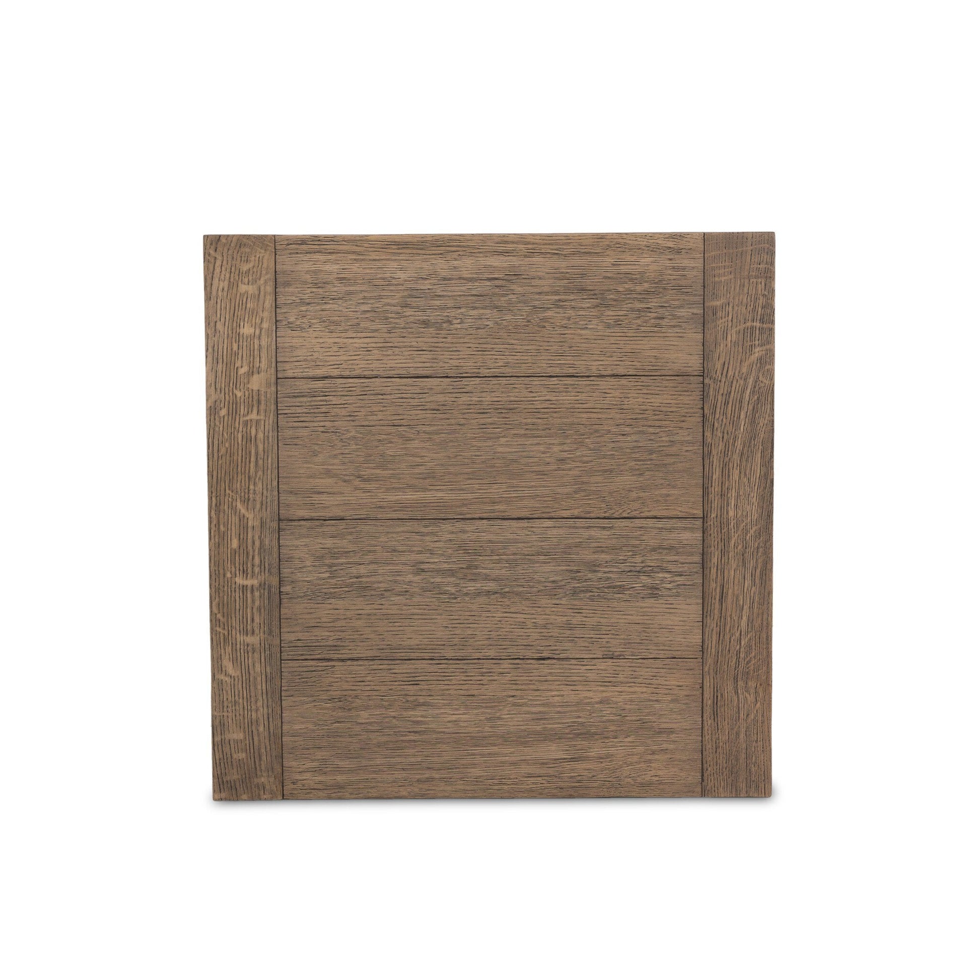 Worn oak shapes a streamlined end table with a naturally minimalist look.