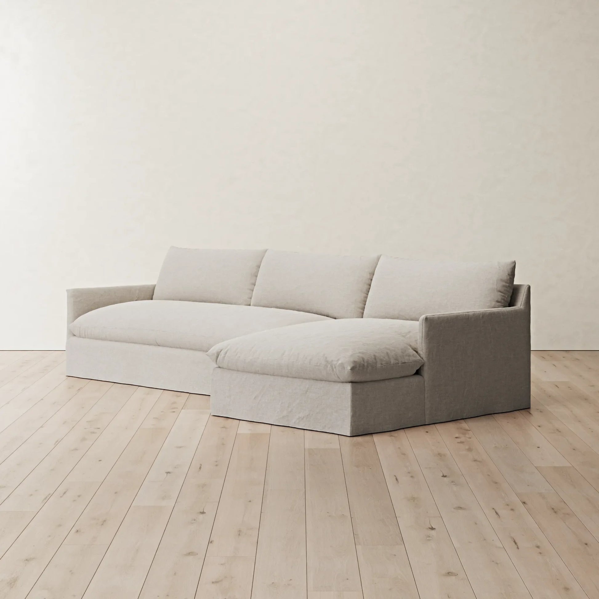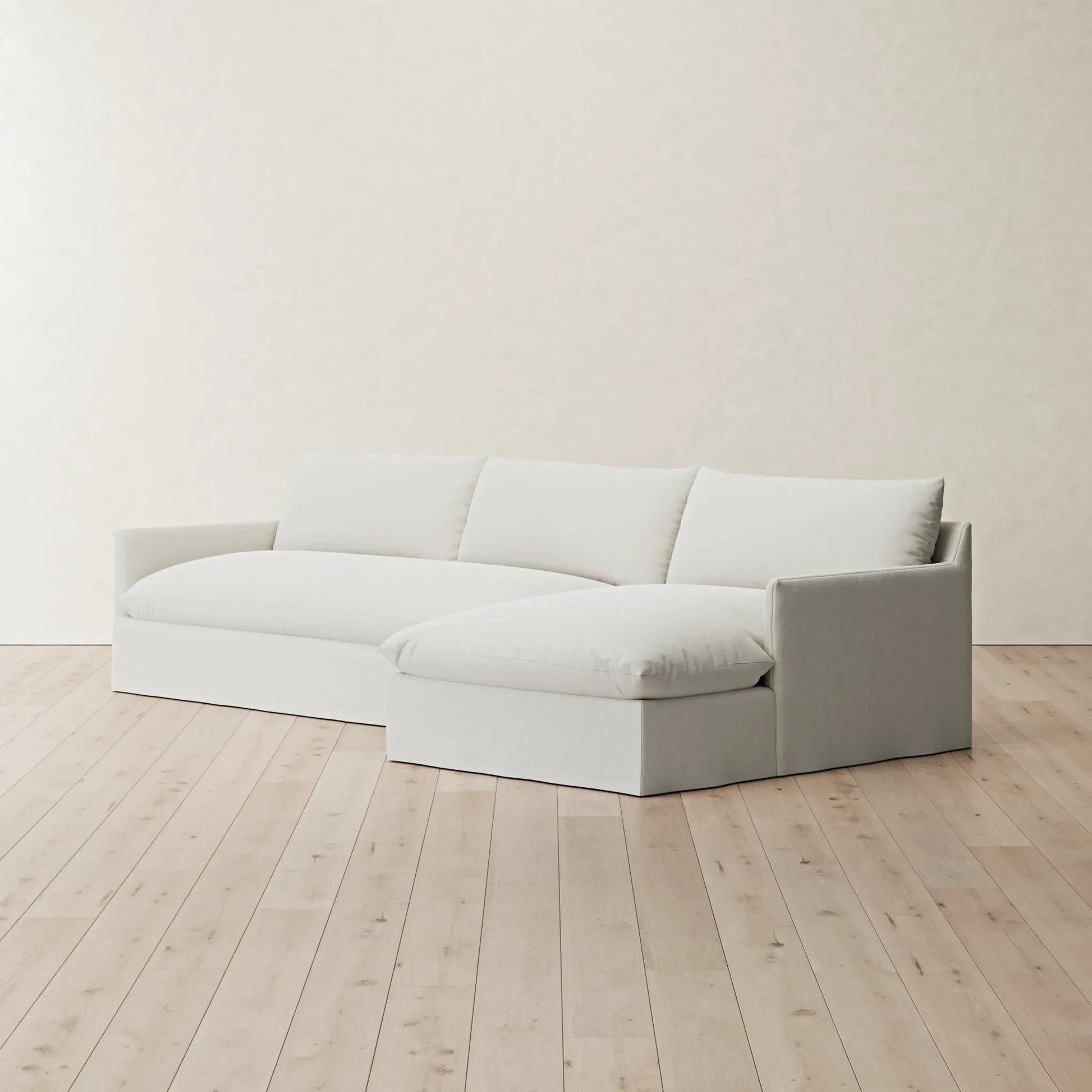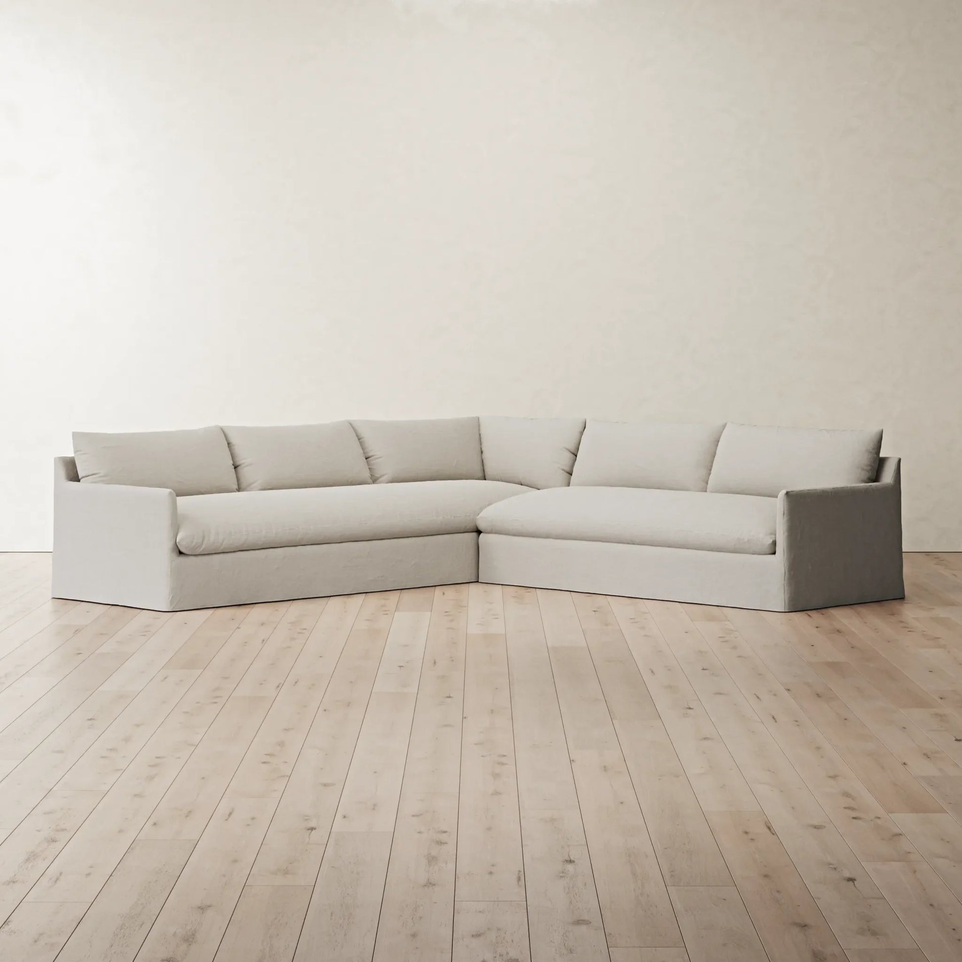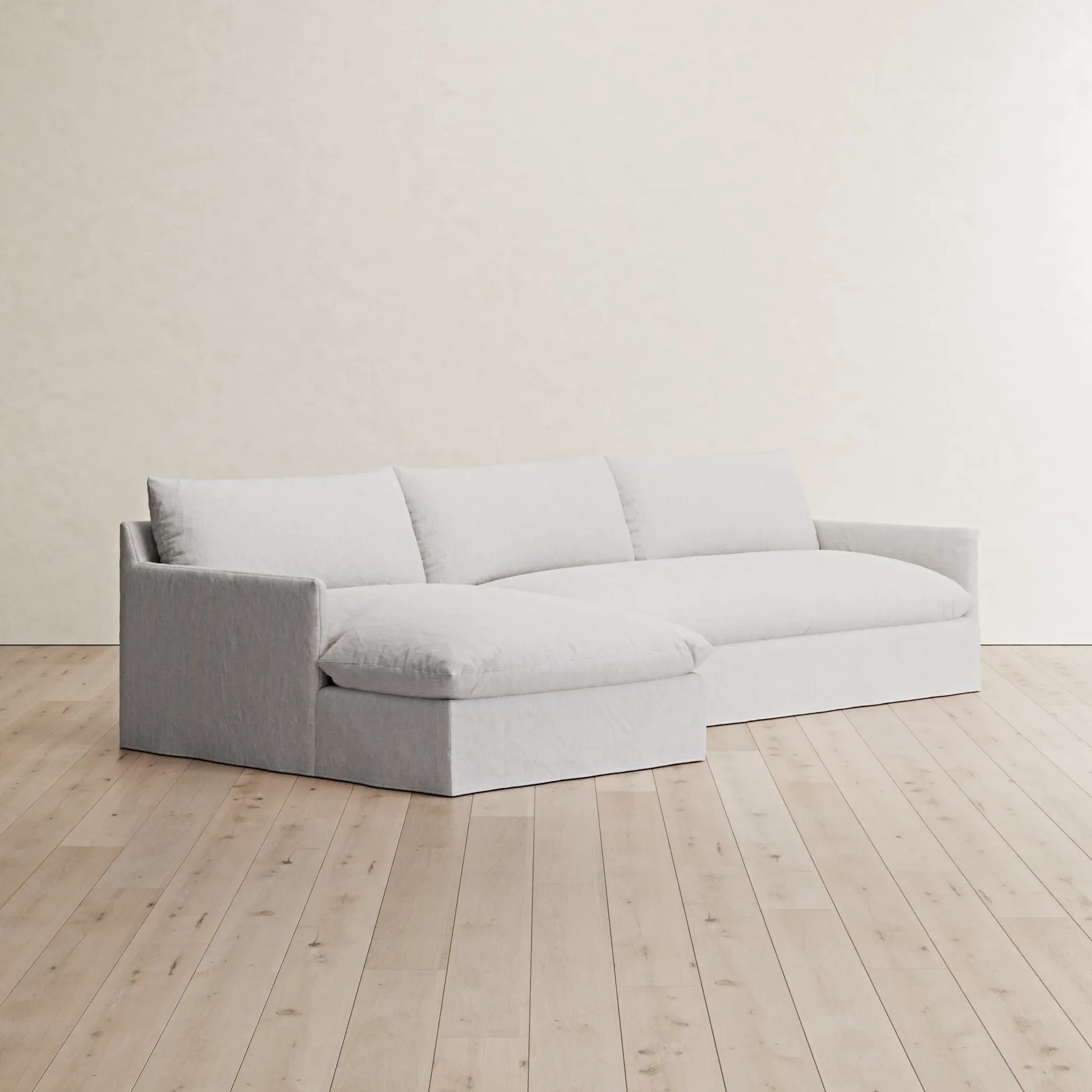 The definition of cozy classic, our made to order Dusty Sectional is a tried and true design with elevated details. With a corner sectional design, seating is maximized, and comfort is prioritized, while the bench cushion design keeps the look tailored and clean. Offered in a slipcovered style, in a range of signature Pure Salt fabrics and colors, the Dusty Sectional allows you to customize your look to suit your exact style and taste.