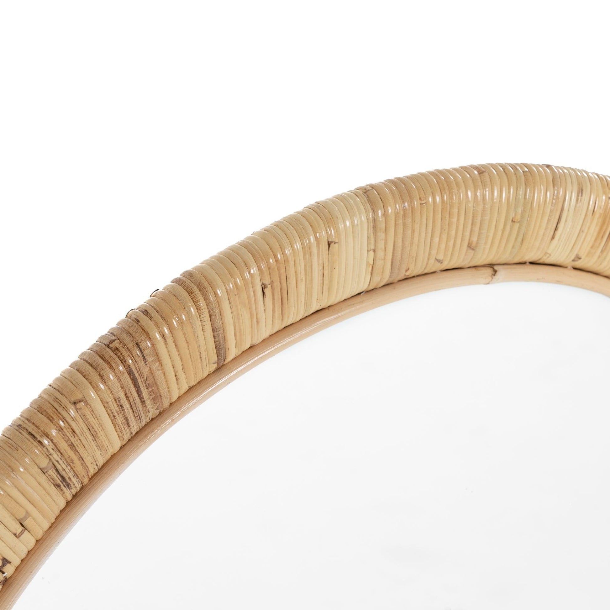 La meilleure façon de rendre votre espace lumineux et aéré est d'utiliser le miroir Jocelyn . Sa forme ronde réfléchit beaucoup de lumière et son cadre en rotin naturel fait sensation lorsqu'il est installé et mis en scène.