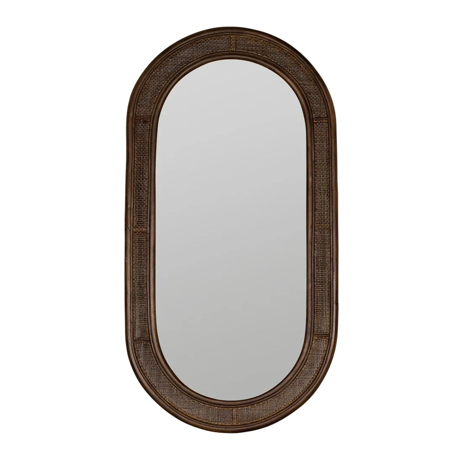 Ajoutez une touche de chaleur et de texture à votre espace de vie avec notre miroir Felix. Ce magnifique miroir présente un cadre en bois de noyer foncé qui complète parfaitement un tissage de rotin complexe.
