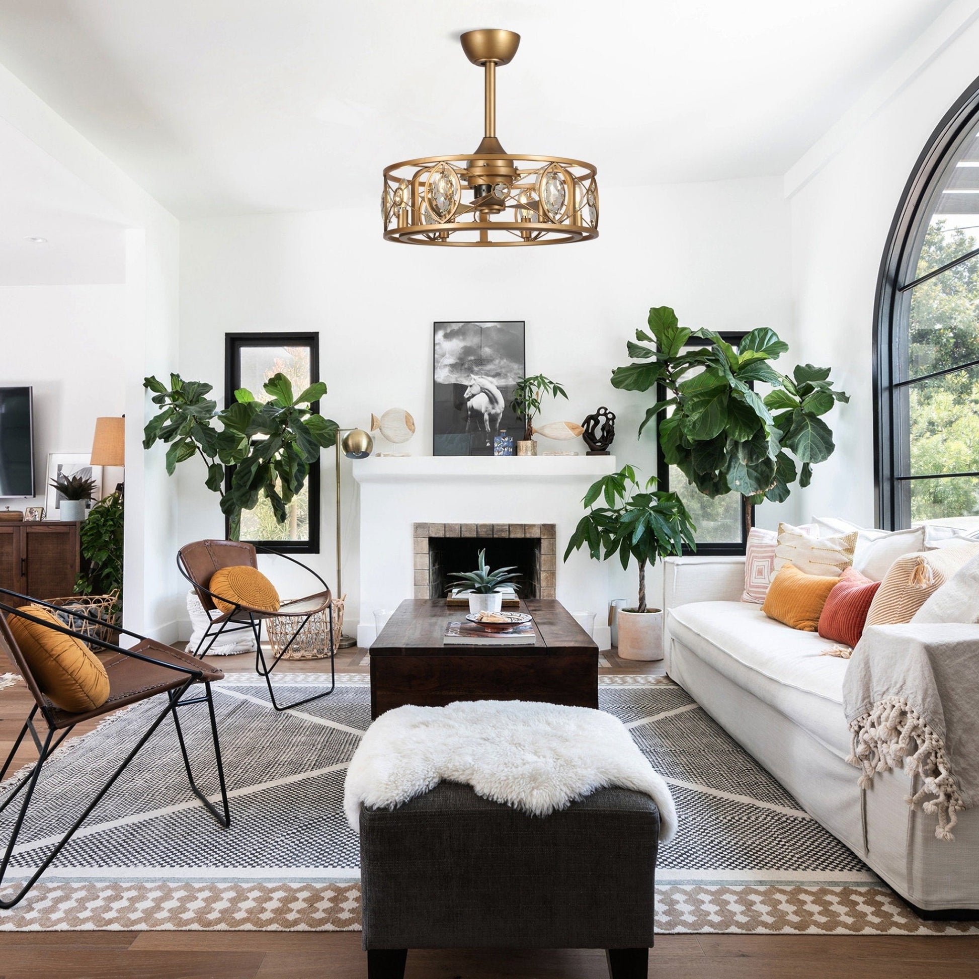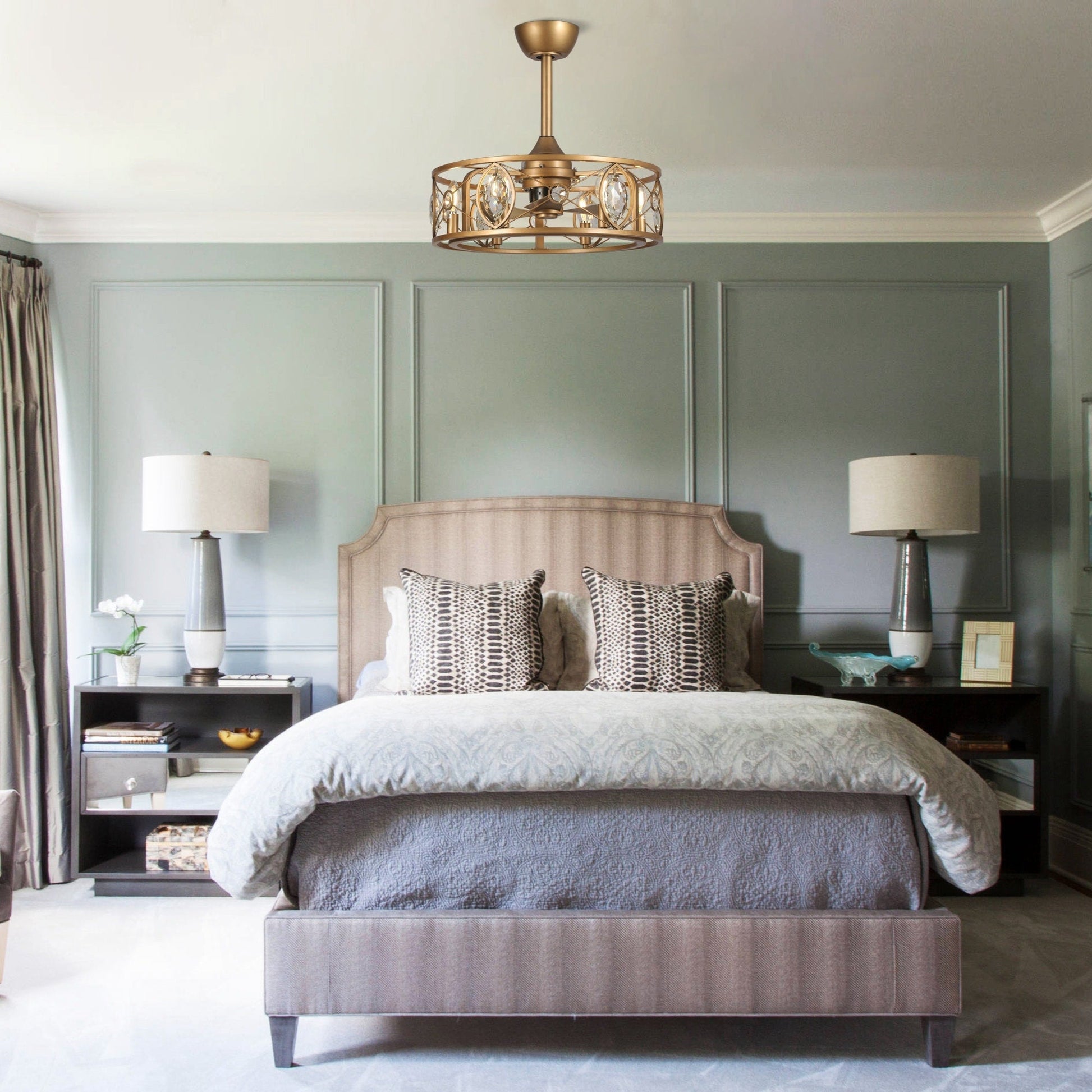 Ventilateur de plafond avec abat-jour en cristal moderne, cage et télécommande (22 pouces)