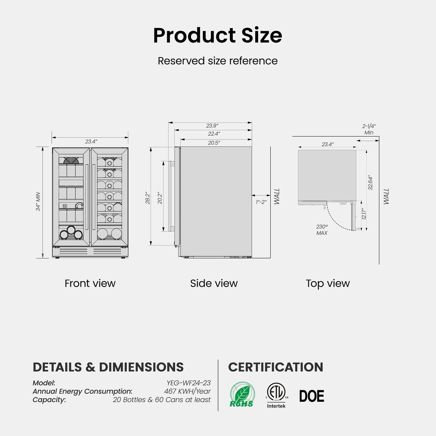 Refroidissement écologique et efficace : Doté du réfrigérant R600a et certifié DOE, le refroidisseur de boissons et de vin Yeego offre un refroidissement rapide et uniforme tout en économisant l’énergie. Le système de ventilation frontale améliore la circulation de l’air et la dissipation de la chaleur, tandis que le filtre à charbon actif élimine les odeurs, maintenant un environnement frais à l’intérieur de ce réfrigérateur à vin et boissons.
