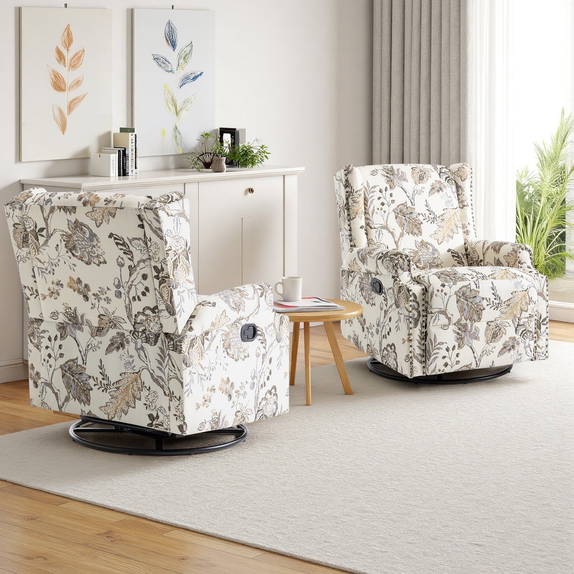Lot de 2 chaises inclinables à bascule pivotantes à commande manuelle avec dossier inclinable, motif, 73,7 cm de largeur.