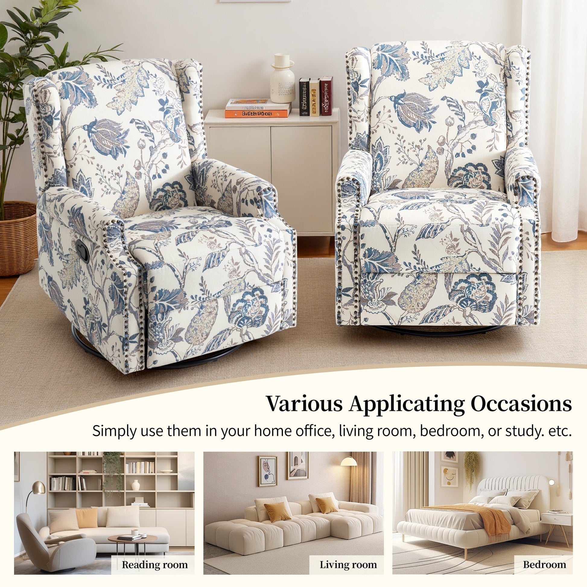 Ce fauteuil inclinable pivotant au design luxueux offre un mariage parfait d'innovation ergonomique et d'élégance intemporelle. Recouvert d'un tissu en lin et coton respirant et doux au toucher, il assure une durabilité exceptionnelle et une expérience de détente incomparable. Son motif floral et botanique artistique lui confère un charme sophistiqué, faisant de lui un complément magnifique pour les intérieurs contemporains et classiques. Conçu pour une inclinaison facile, le dossier réglable se déploie en douceur grâce à un simple mécanisme de levier latéral, vous permettant d'atteindre l'angle parfait pour la relaxation. La base pivotante en métal robuste assure une rotation stable à 360 degrés, offrant une mobilité supérieure. Le repose-pieds intégré se déploie automatiquement, offrant un soutien optimal du bas du corps pour un confort accru. Fabriqué avec une précision d'ingénierie et des matériaux de haute qualité, ce fauteuil est conçu pour résister à l'utilisation quotidienne tout en offrant une expérience de relaxation inégalée.