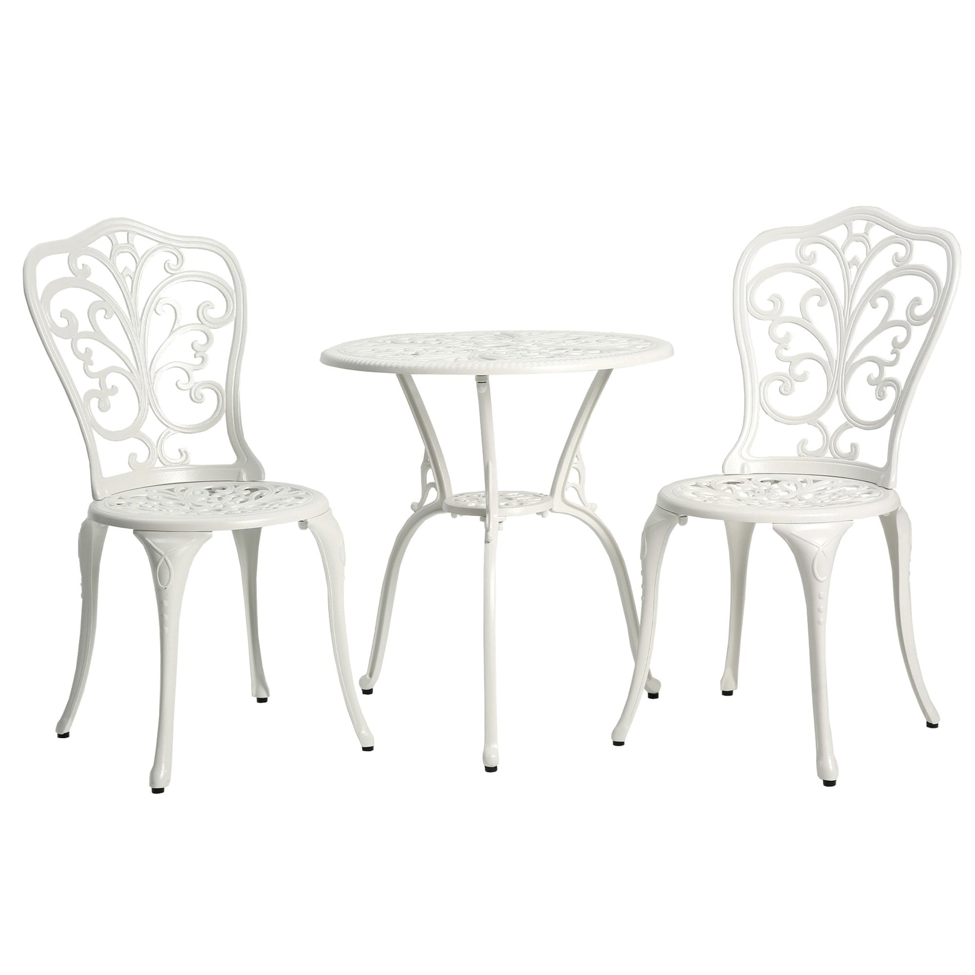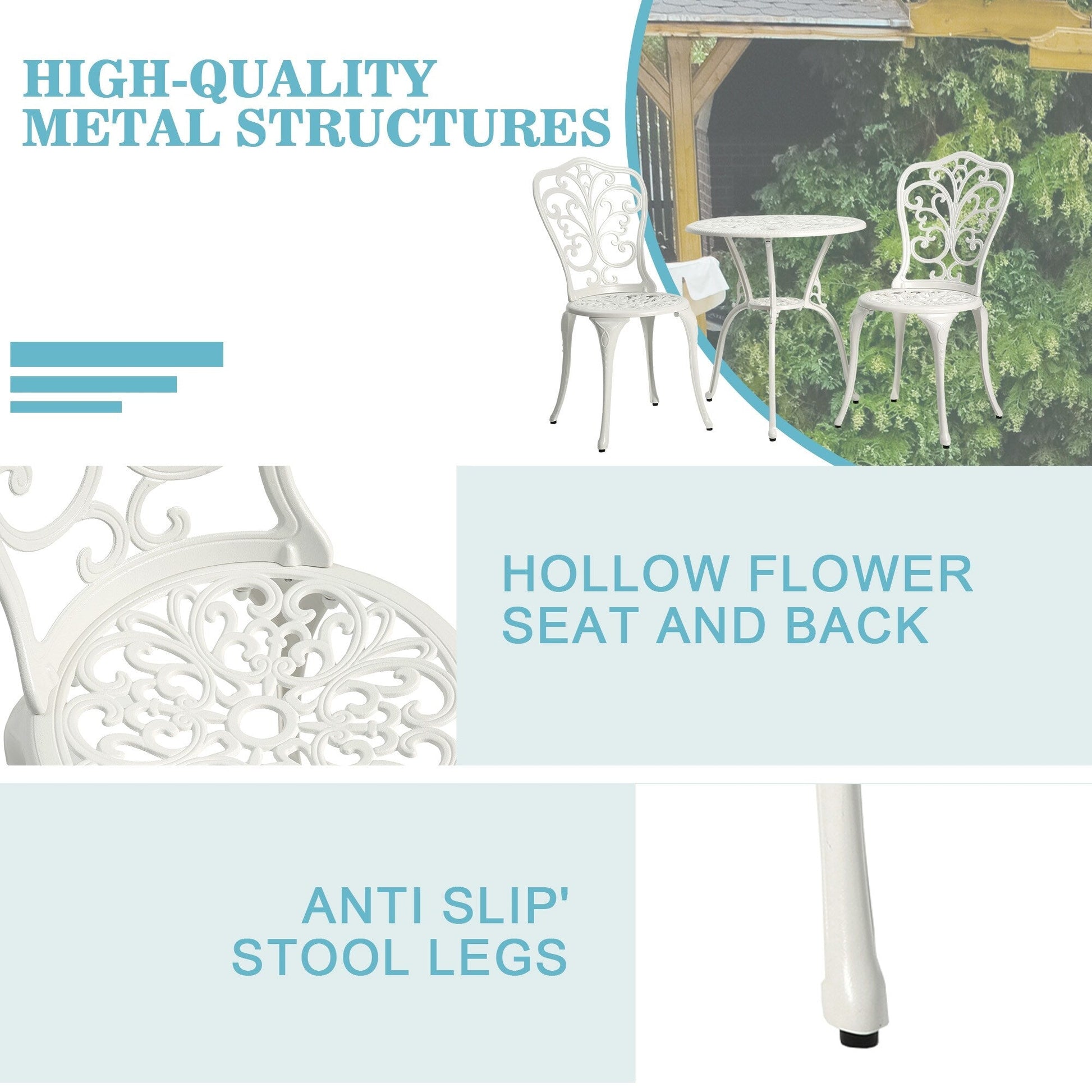 Table et chaises de jardin en aluminium pour extérieur, style papillon, 3 pièces, avec trou pour parasol