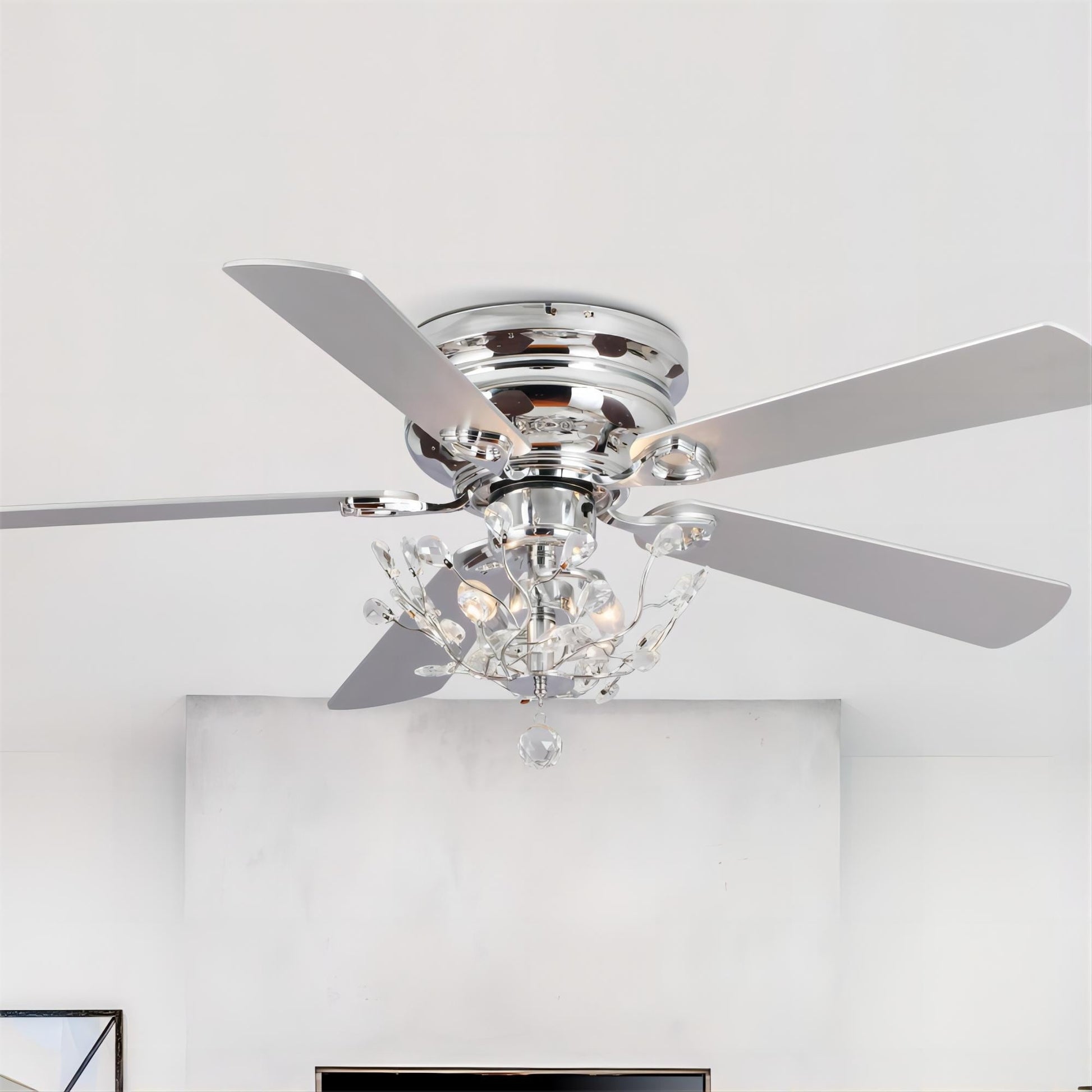 Ventilateur de plafond moderne à 5 pales réversibles, à montage encastré, avec télécommande, 48 pouces, en cristal.