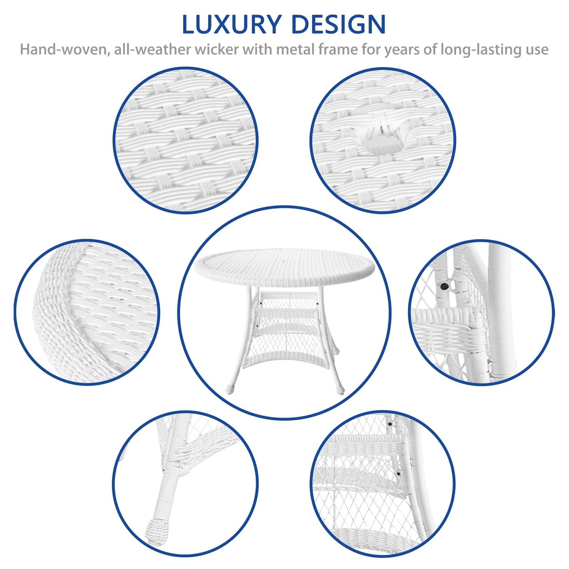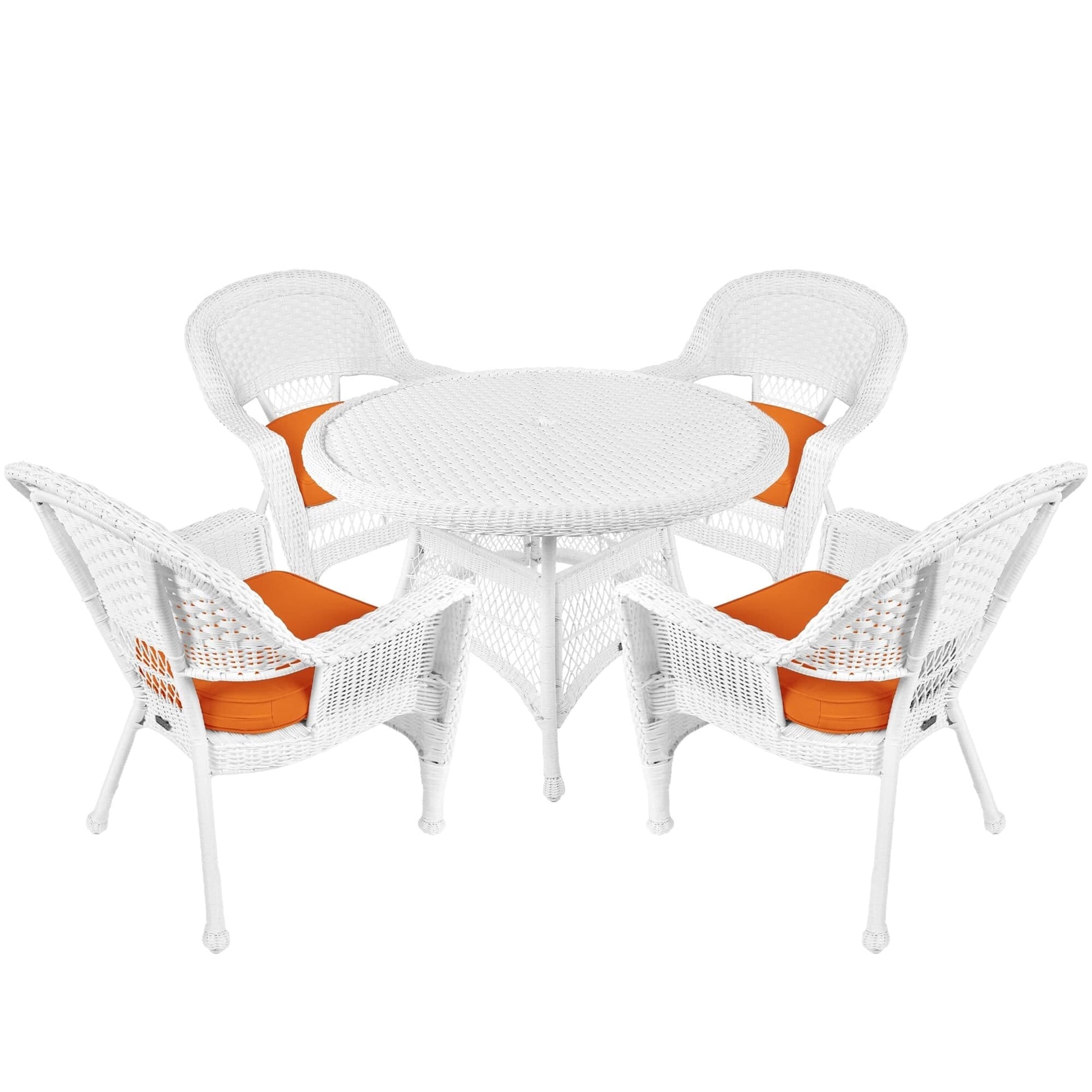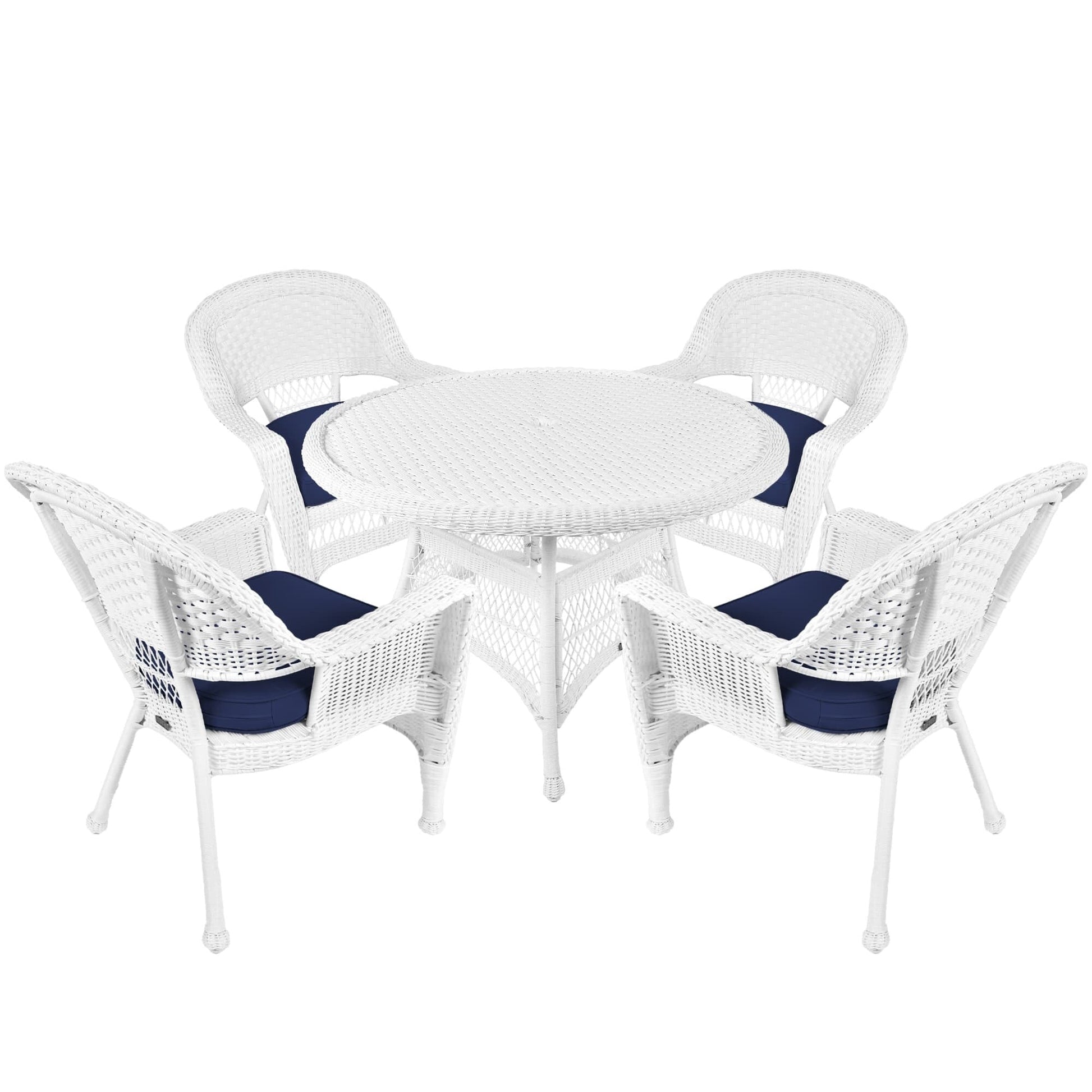 Rendez votre espace extérieur plus confortable avec ce salon de jardin 5 pièces en osier synthétique blanc. Profitez du confort de la vie intérieure avec cet ensemble en osier élégant, comprenant une table ronde en osier et quatre chaises avec des coussins moelleux disponibles en plusieurs couleurs. L'ensemble est conçu pour durer grâce à sa structure en acier et son osier synthétique résistant aux intempéries.