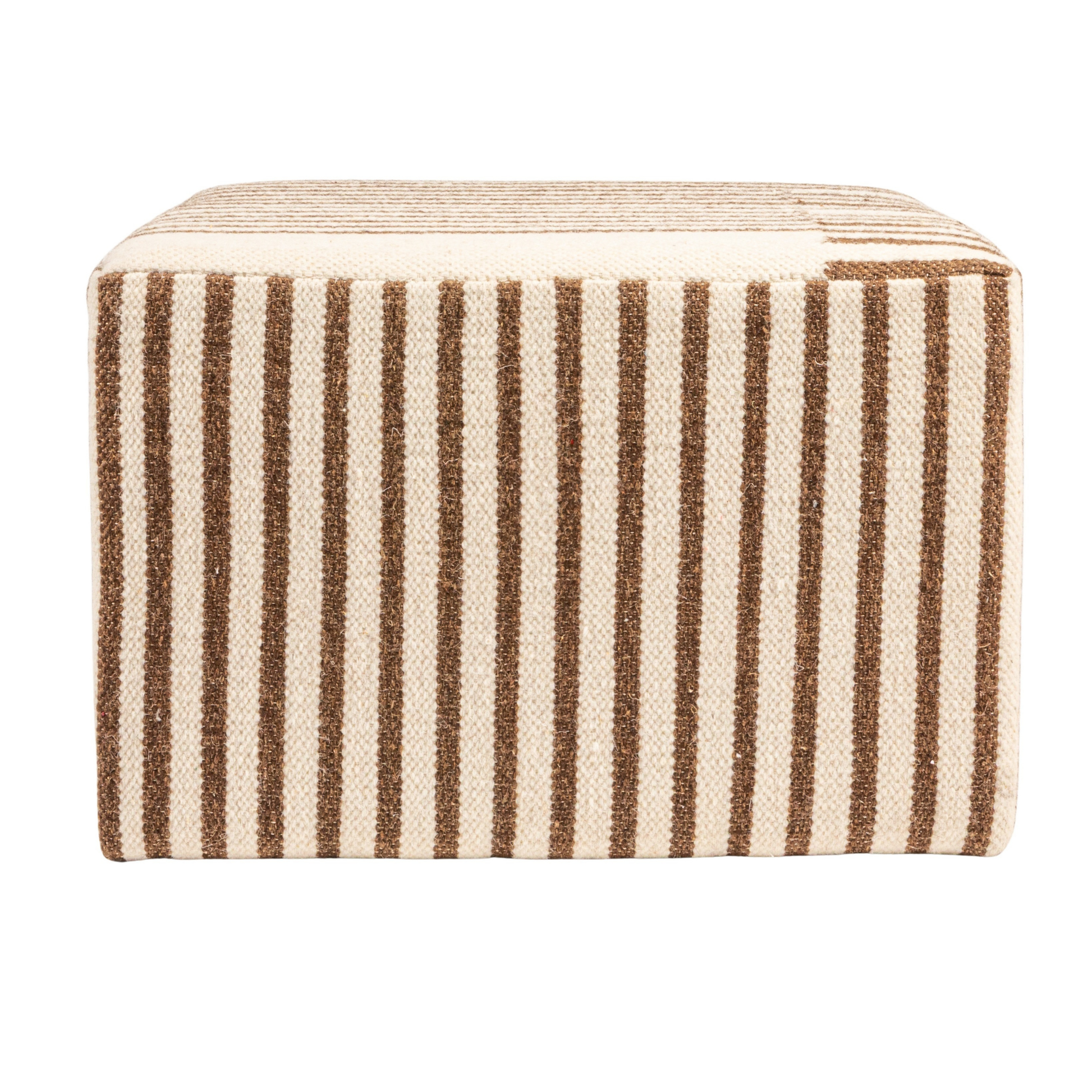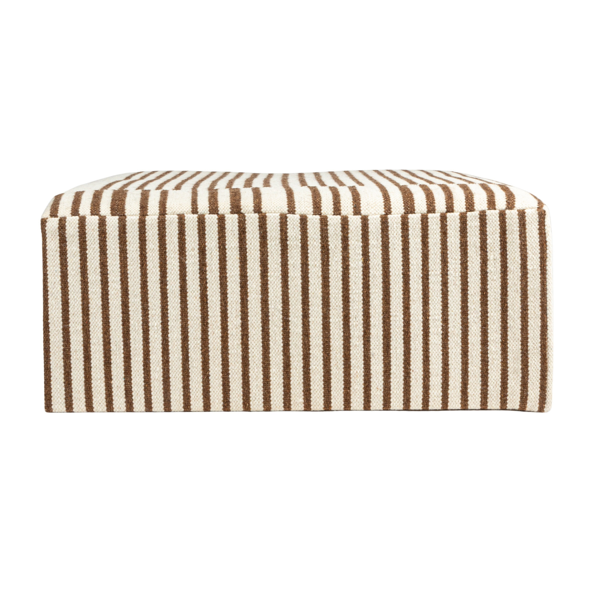 The Halston Upholstered Ottoman adds a playful yet polished touch with its bold stripe pattern and tailored cube silhouette. Versatile as a footrest, extra seat, or casual accent table, it brings function and personality to any corner of the home.