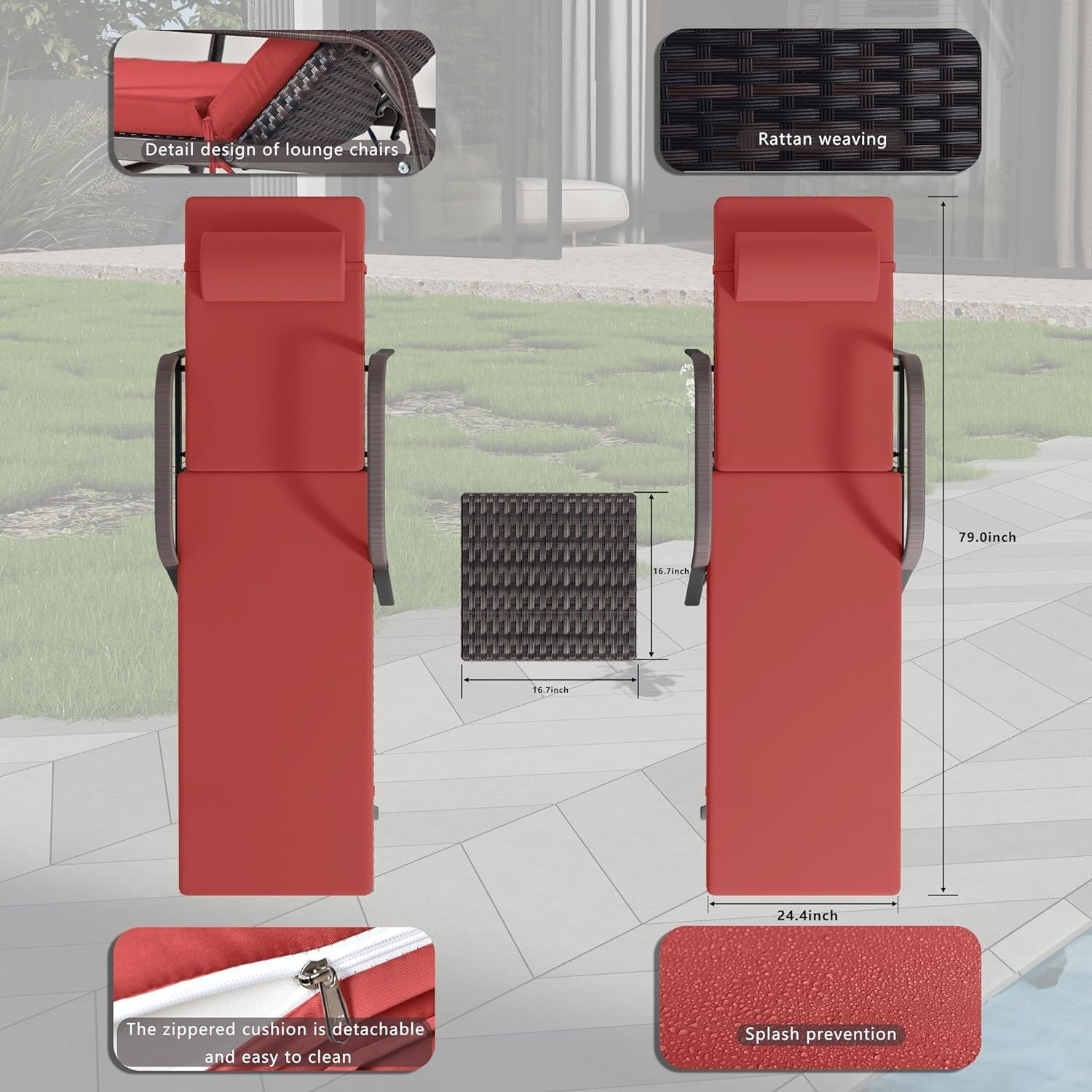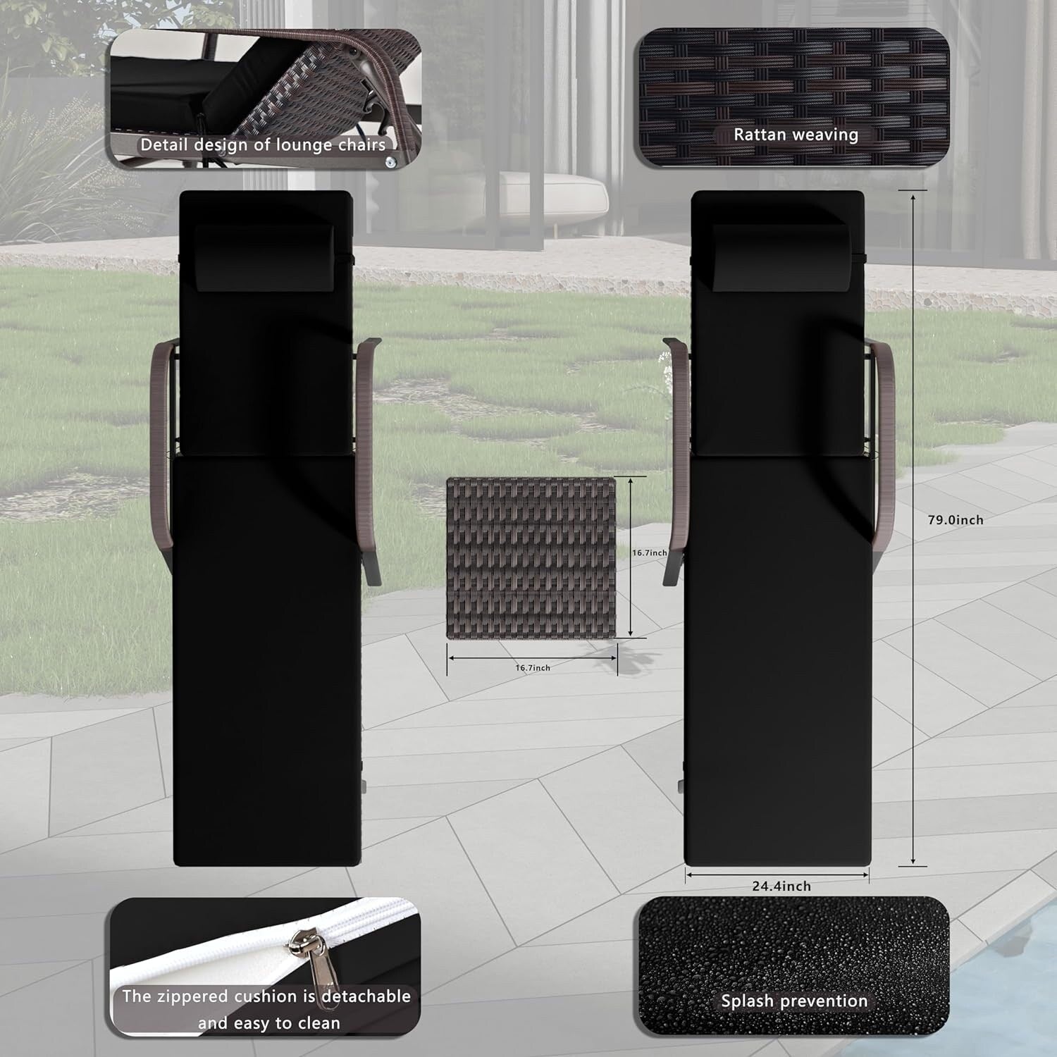 Nouvelle version : sur la base de l'ensemble 3 pièces de chaises longues pliantes, nous avons conçu un ensemble 3 pièces de chaises longues en rotin avec accoudoirs .