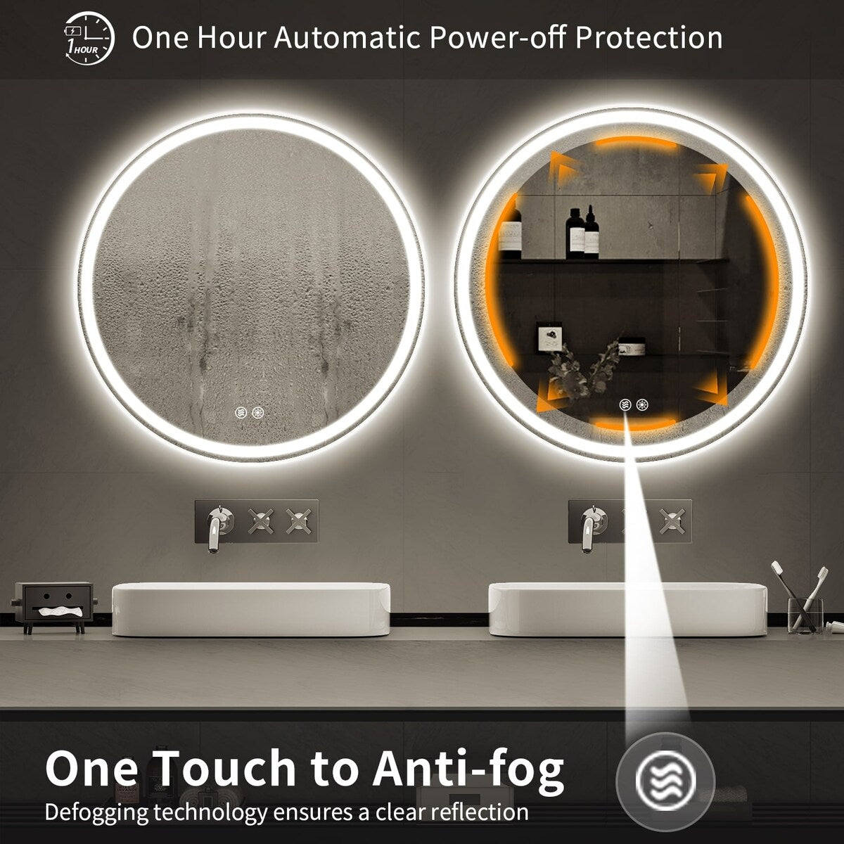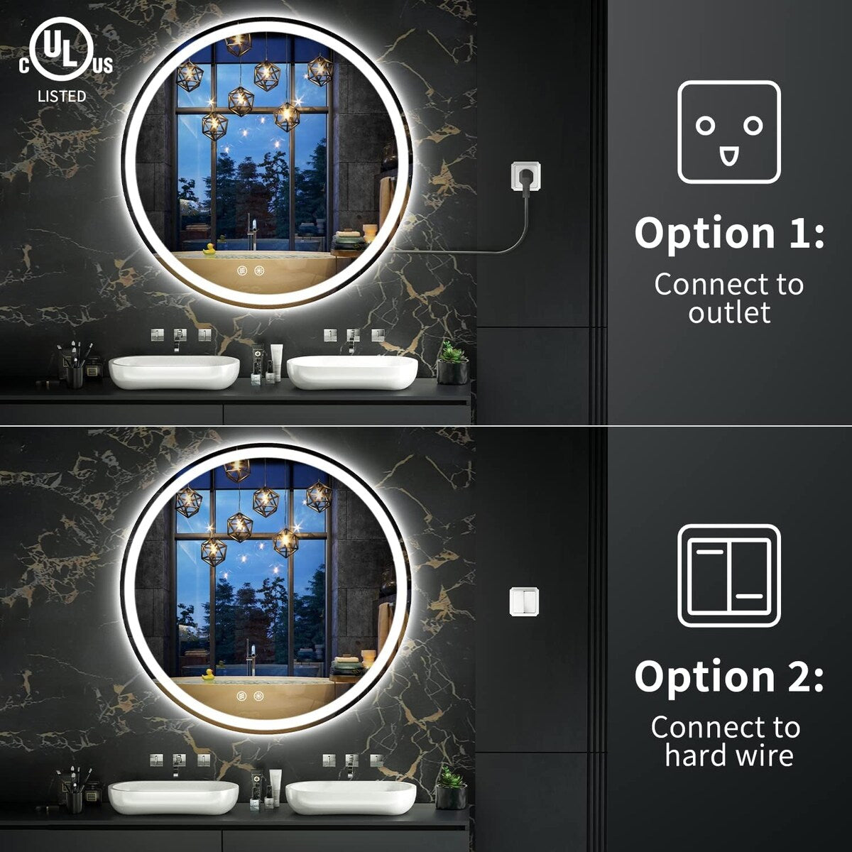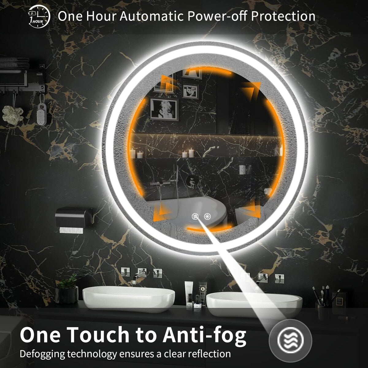 Personne ne peut résister à un meuble (miroir de coiffeuse avec éclairage LED) qui rend les salles de bain, les chambres et les salons plus pratiques et uniques. Ce miroir de salle de bain avec éclairage rétro et éclairage frontal, réglable sur 3 températures de couleur et différents niveaux de luminosité, permet à la femme/l'homme moderne d'appliquer son maquillage et ses soins de la peau dans des conditions d'éclairage idéales. De plus, le miroir mural avec éclairage est doté d'un système anti-buée amélioré pour garantir une vision toujours claire et sans buée. Le miroir de coiffeuse rond peut également servir de miroir décoratif dans une entrée, un placard ou un couloir.