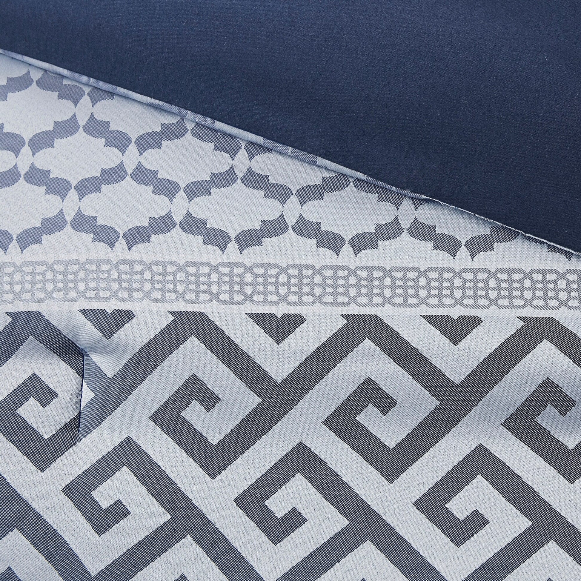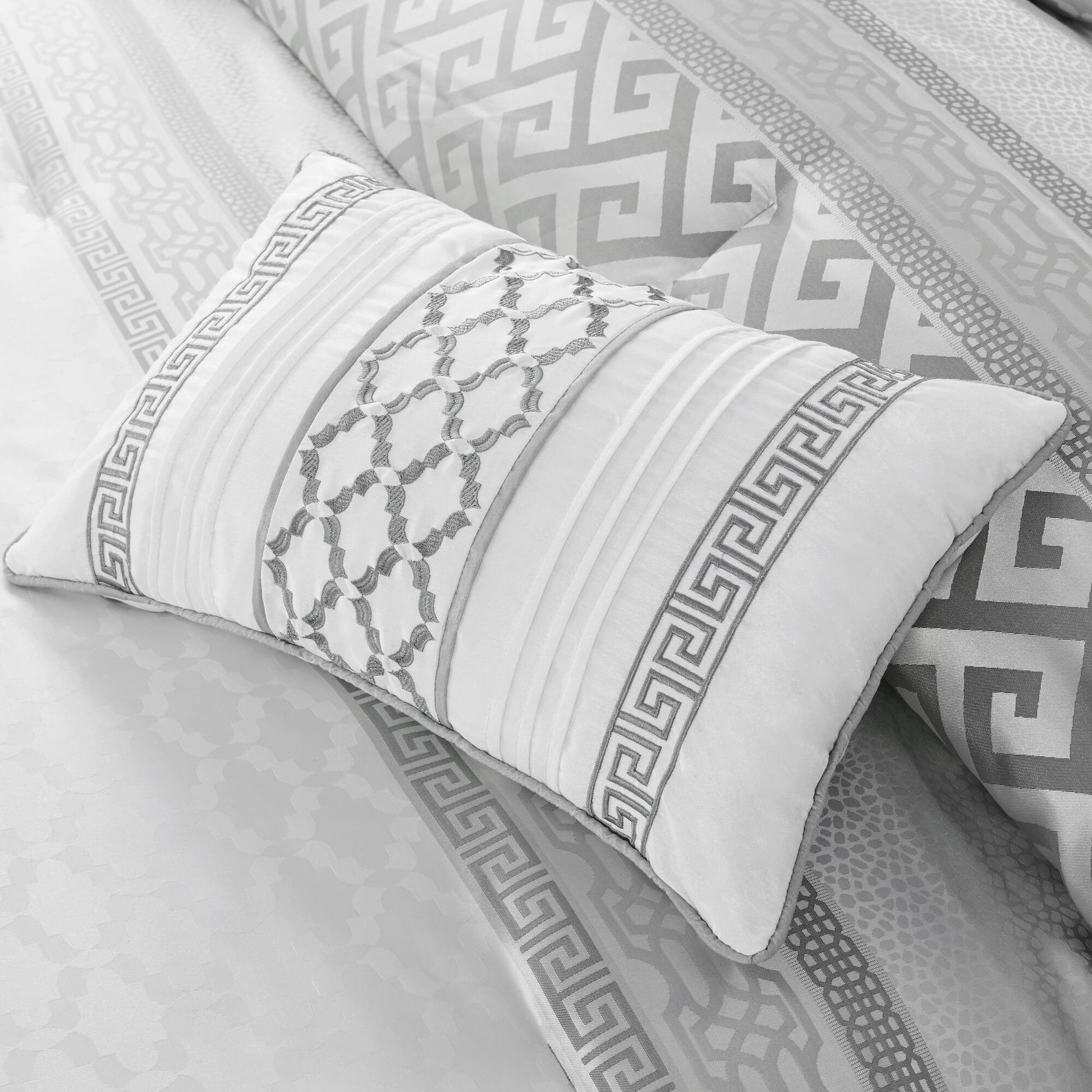 - L'ensemble comprend 1 édredon, 2 taies d'oreiller, 3 coussins décoratifs et 1 jupe de lit.
