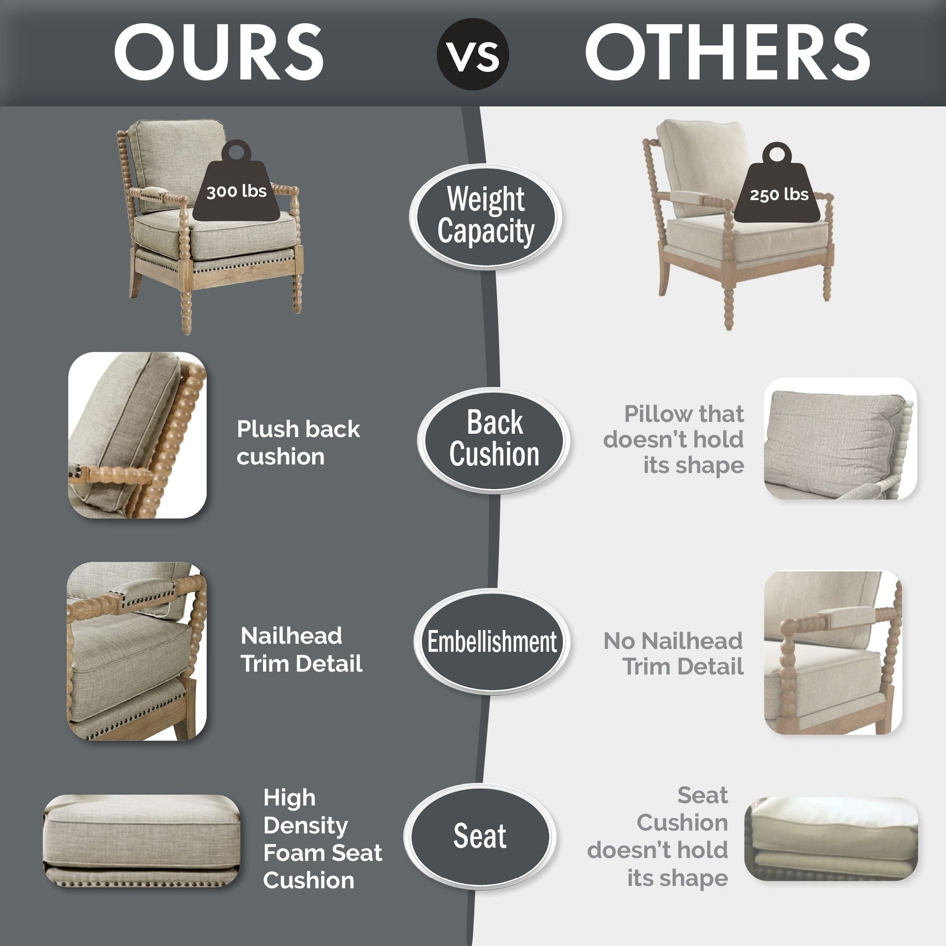 - Fauteuil classique mais décontracté avec un dossier ajouré à balustres et des détails en bois tourné sur les pieds avant pour un charme intemporel.