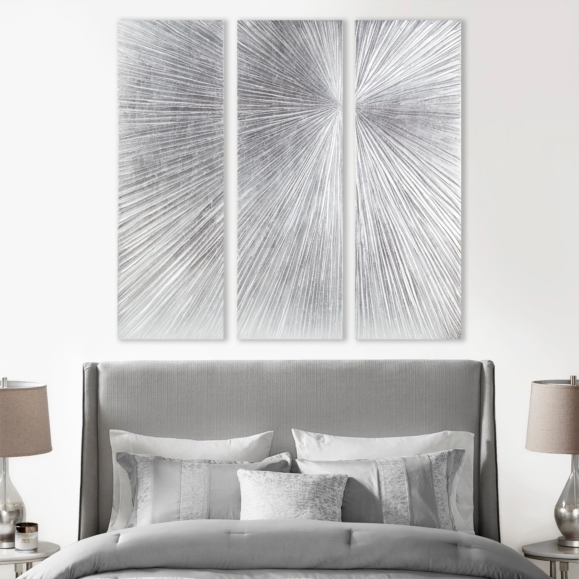 Illuminez votre espace avec l'élégance captivante du triptyque mural peint à la main Sunburst. Ce jeu de 3 pièces remarquables présente un motif abstrait moderne en forme de soleil, rehaussé d'une finition métallisée dorée qui apporte chaleur et sophistication à n'importe quelle pièce. Fabriqué à partir de résine dimensionnelle avec des détails de texture prononcés, chaque panneau apporte une présence digne d'une galerie à votre décor. Chaque pièce est conçue pour être accrochée verticalement grâce à des accroches en forme de D, ce qui facilite l'installation. Que ce soit dans un salon, une salle à manger ou une entrée, les tons dorés scintillants et le design dynamique créent un point focal qui attire le regard. Transformez votre maison en un espace de luxe raffiné avec le triptyque mural Sunburst — un reflet époustouflant de l'art moderne.