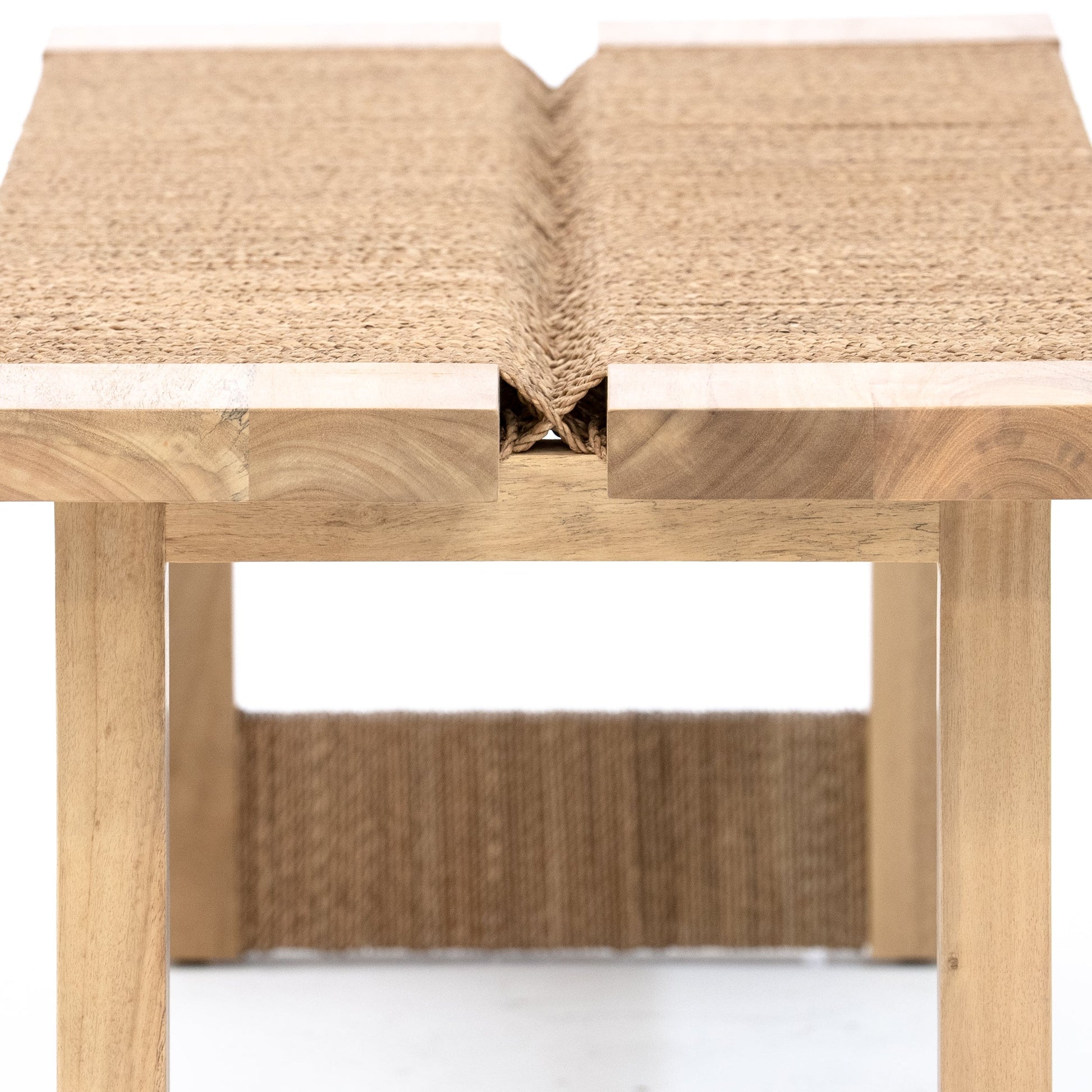 Tissé et fabriqué à la main avec expertise, le banc Mariana possède une structure en bois de hêtre enveloppée de corde naturelle en jonc de mer, apportant ainsi une touche décorative à haute texture à n'importe quel espace. Que vous le placiez dans votre entrée, au bout de votre lit ou même comme table basse unique, les lignes épurées et le design moderne de ce banc apporteront l'excellence artisanale à votre intérieur.