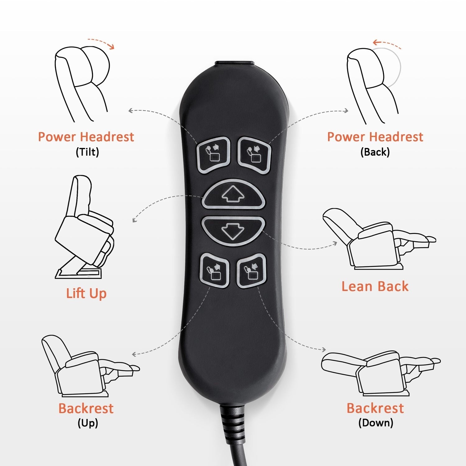Appuie-tête électrique : Bien que les appuie-têtes réglables puissent être utilisés pour un confort personnalisé en position assise, ils sont spécialement conçus pour permettre à une personne en position inclinée de regarder vers l’avant – comme vers la télévision – sans forcer la tête ou le cou.