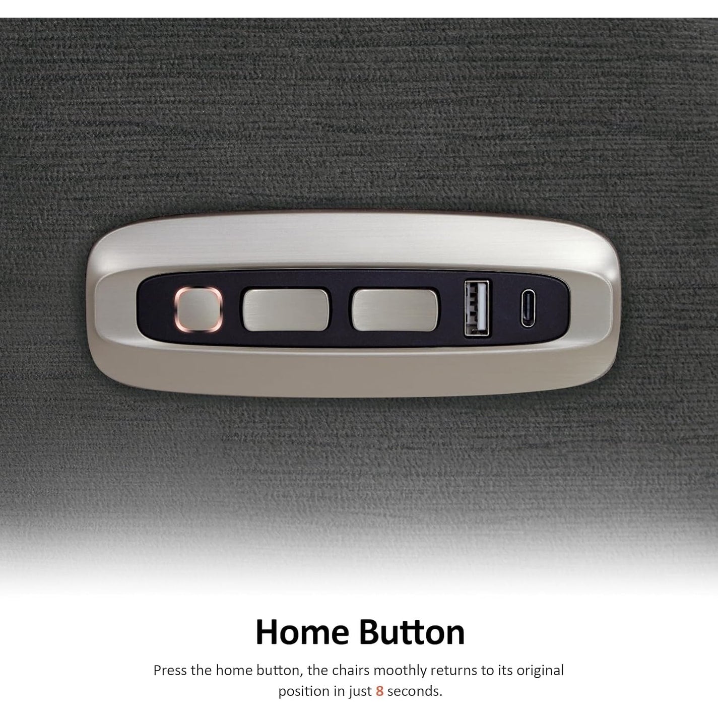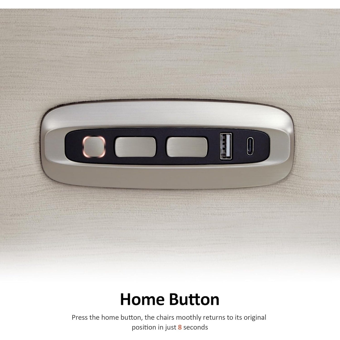 Contrôle facile d'utilisation. Appuyez sur le bouton de retour à l'origine, et la chaise reprend sa position initiale en douceur en seulement 8 secondes. Les deux ports de charge USB et Type-C sur l'accoudoir permettent de charger n'importe quel téléphone ou tablette.