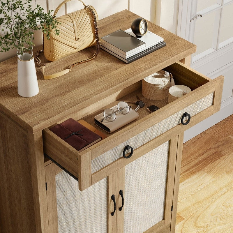 - Le grand espace de rangement peut accueillir 15 à 20 paires de chaussures et de petits objets.