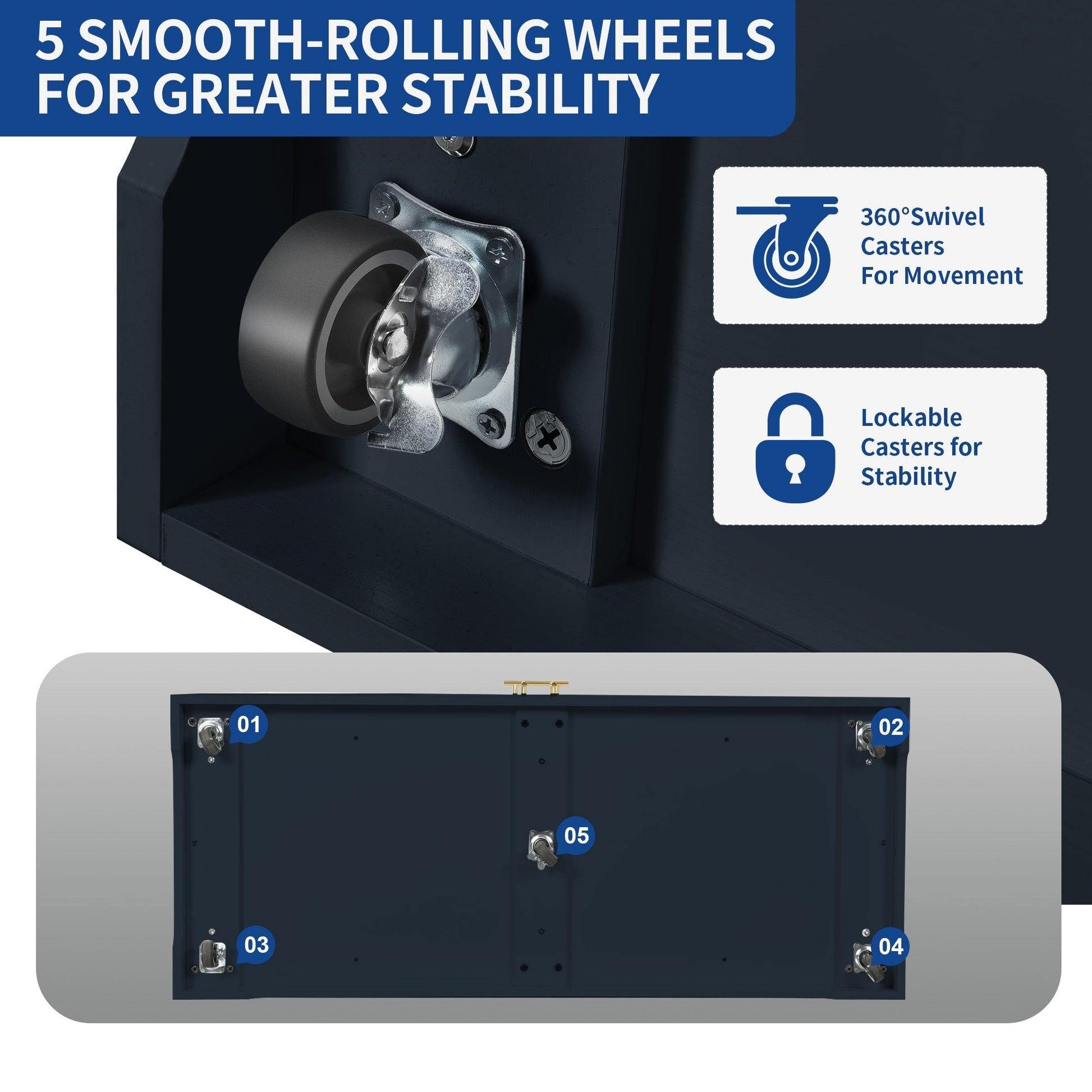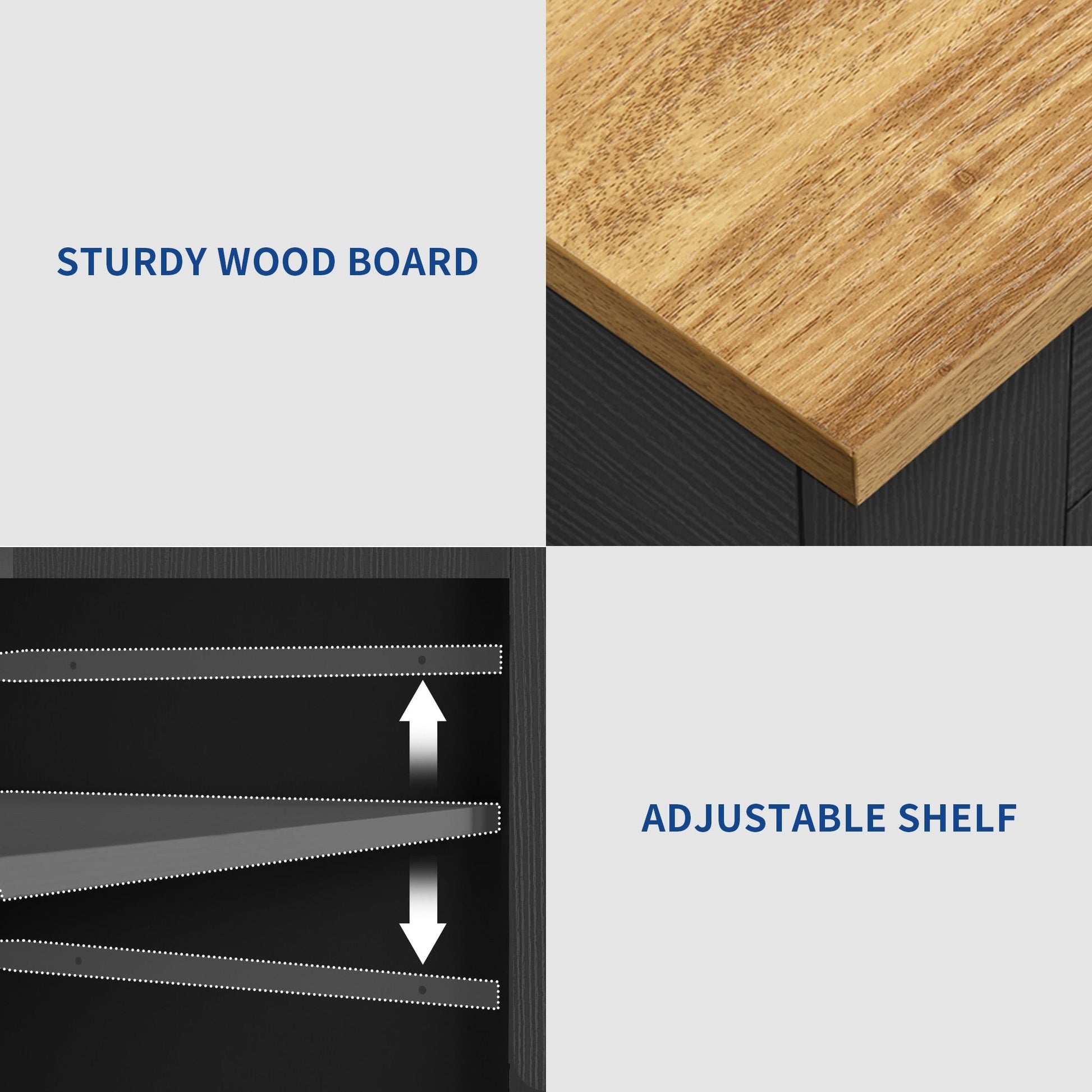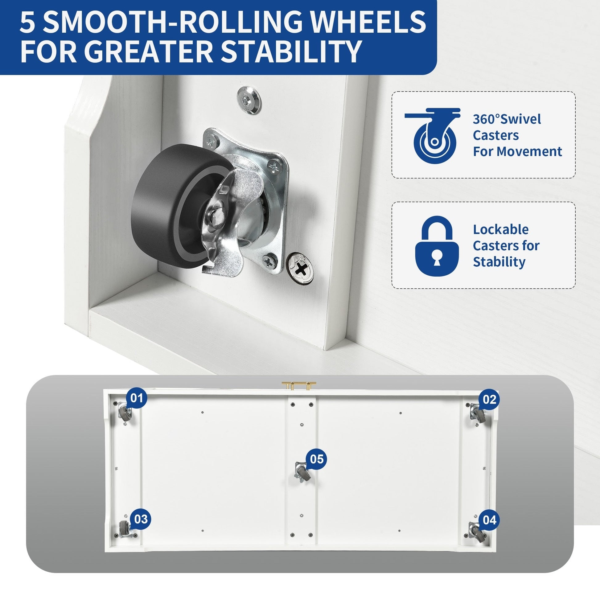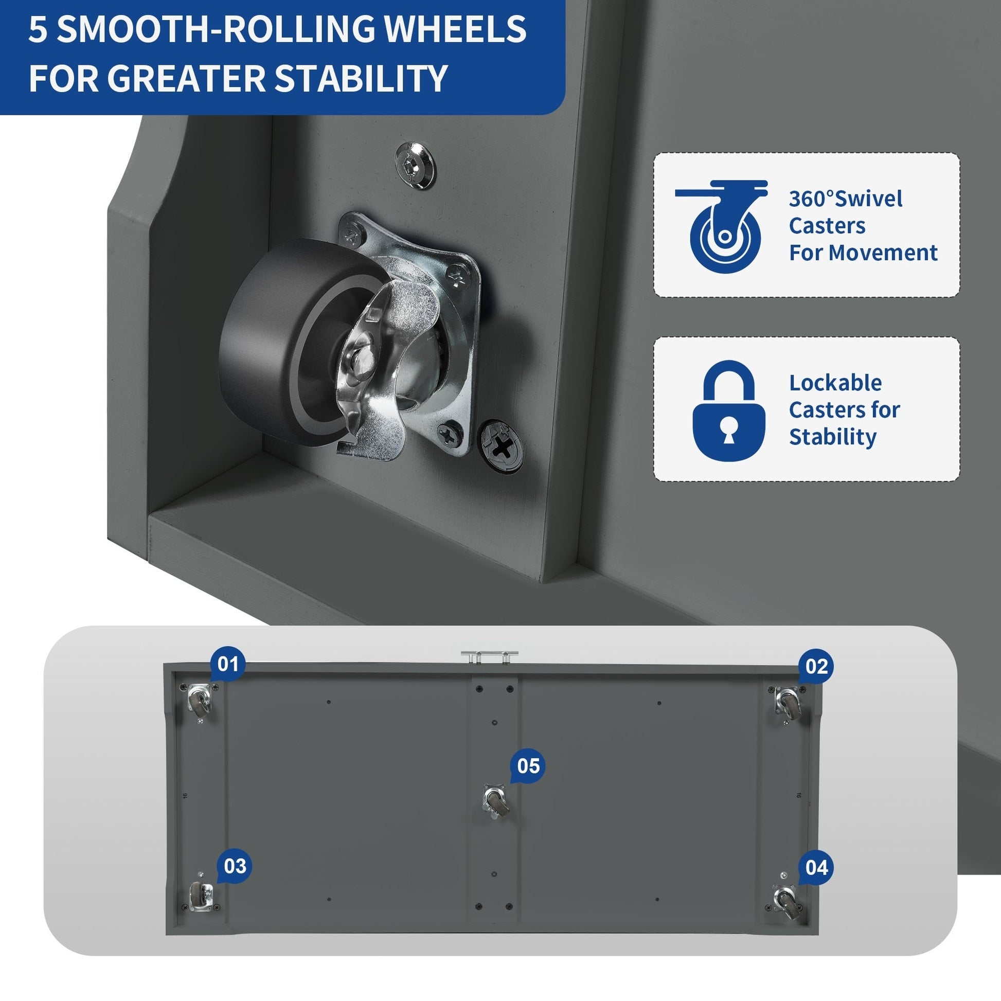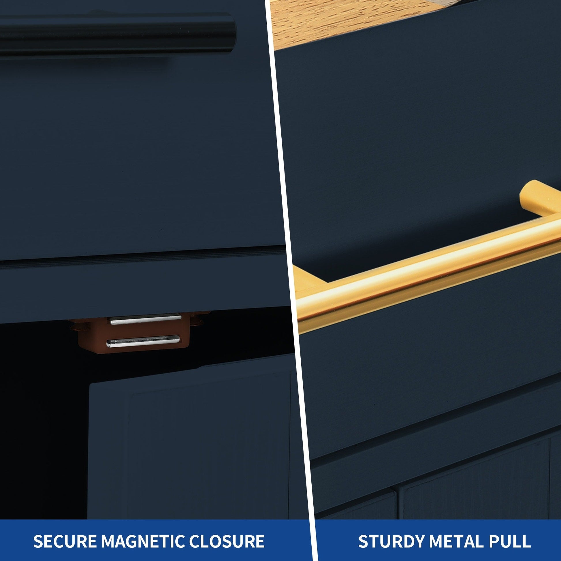 Découvrez notre meuble à poubelle basculant ! Cet ajout essentiel à votre îlot de cuisine vous aide à garder votre cuisine et votre salle à manger propres et fraîches en rangeant en toute sécurité une poubelle de 10 gallons (non fournie) pour éviter les odeurs. Il offre un espace de rangement ample avec 2 tiroirs pour les ustensiles, la vaisselle et la papeterie, et 3 étagères ouvertes latérales pour les épices. L'étagère réglable à l'intérieur du meuble peut accueillir divers articles de cuisine. Ce chariot polyvalent est équipé de roulettes verrouillables pour faciliter le déplacement et le verrouillage pour la préparation ou le rangement des aliments. Idéal pour les cuisines, les salles à manger et les restaurants, ce meuble est fabriqué à partir de panneaux MDF certifiés CARB phase Ⅱ, garantissant la sécurité. Le montage est simple grâce à des instructions claires.