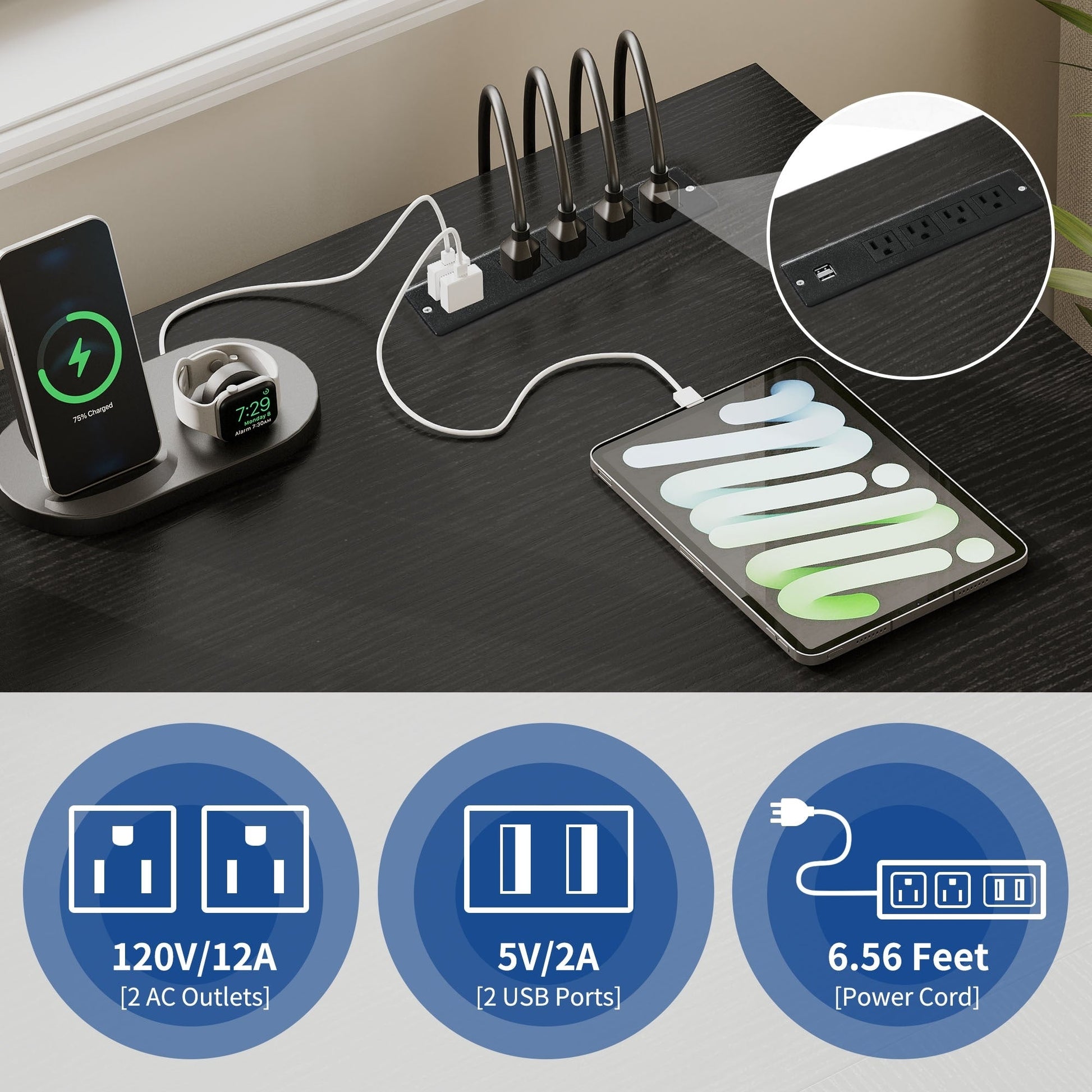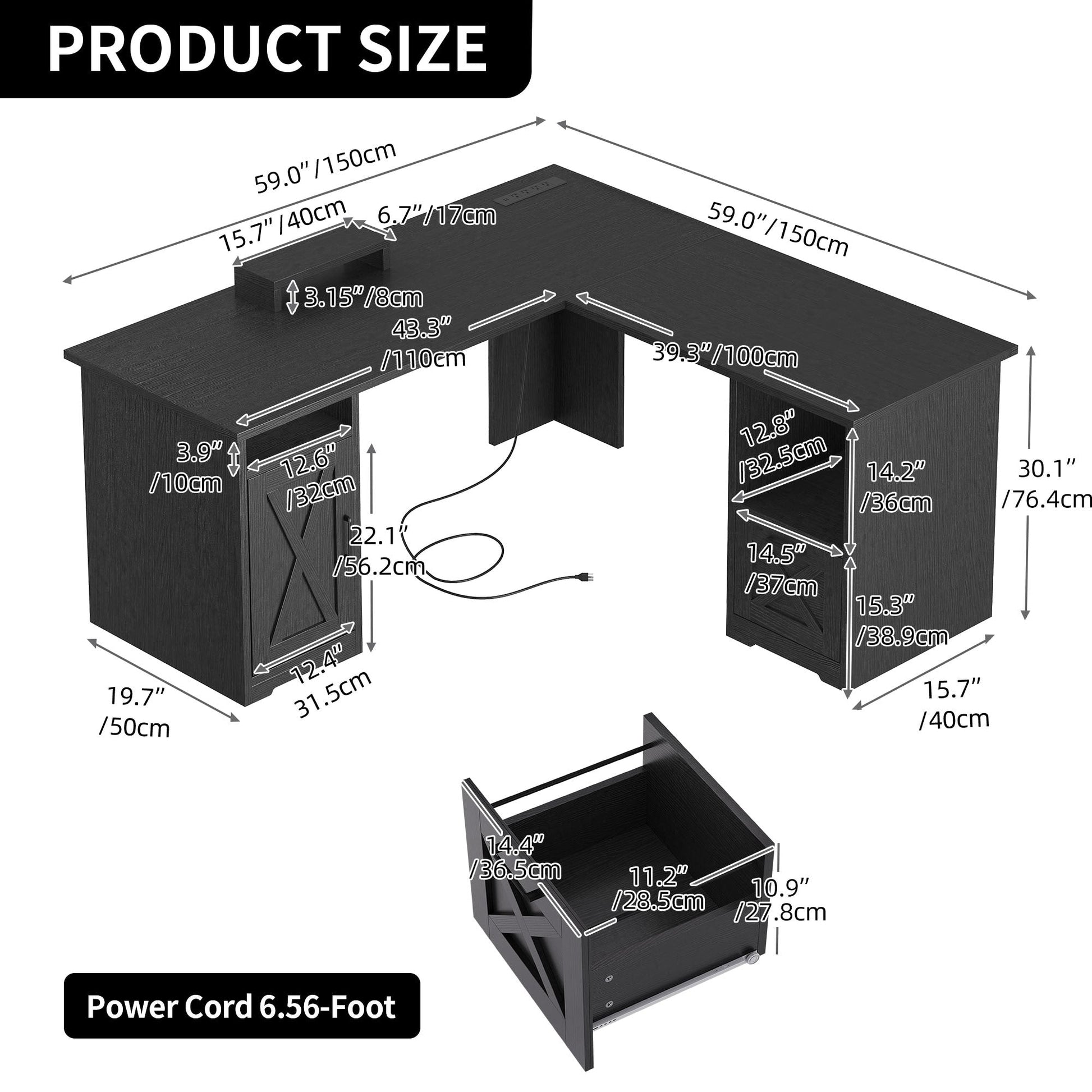 • 1. Rechargez vos appareils facilement grâce à ce bureau en forme de L avec tiroirs. Il possède 2 ports USB, 4 prises de courant et un cordon d'alimentation de 2 mètres pour que votre ordinateur, ordinateur portable, téléphone, tablette, imprimante et équipement de jeu restent branchés et prêts à l'emploi.