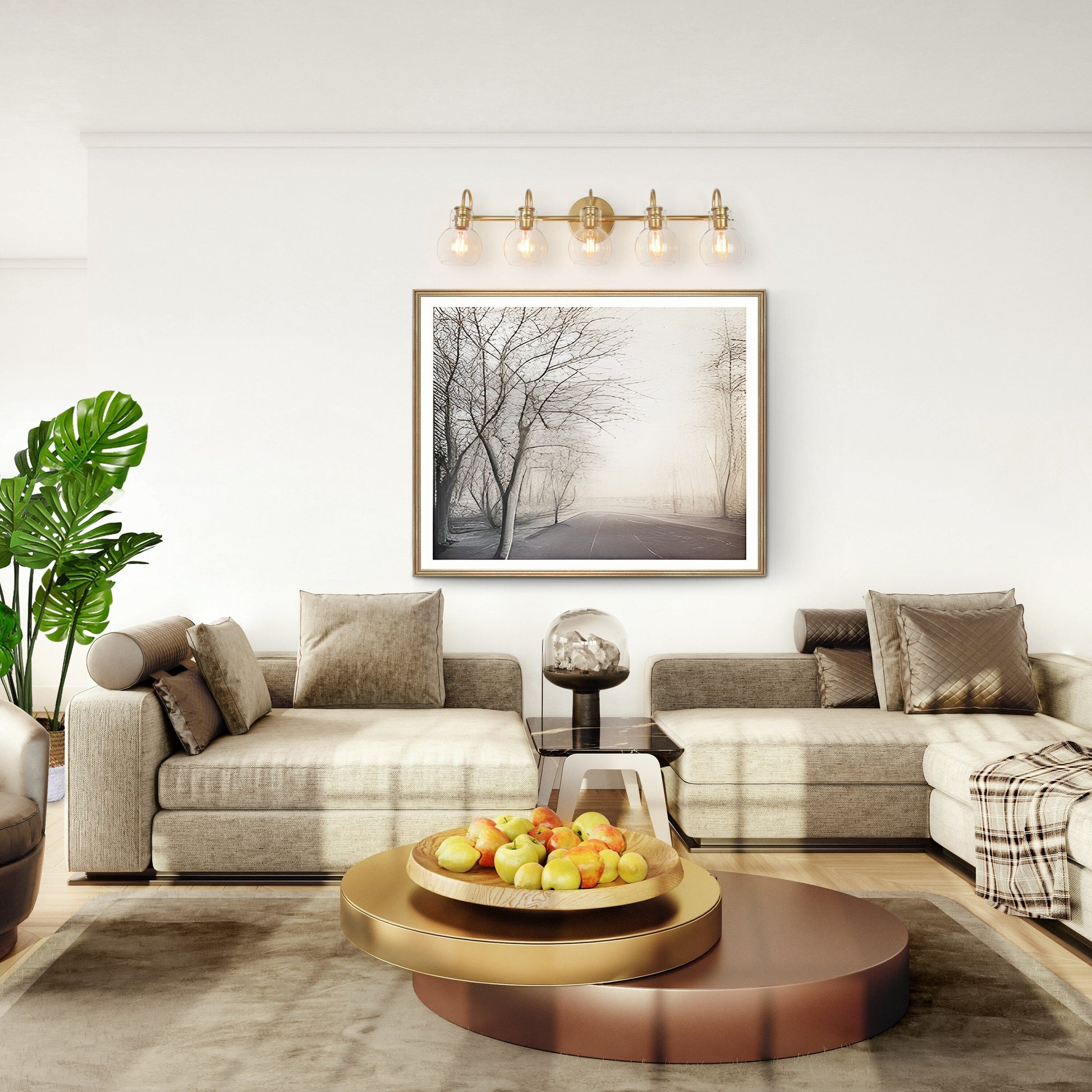 Ajoutez une touche de charme moderne et rustique à votre salle de bain avec ce luminaire de vanité au design soigné. Disponible en noir ou or peint à la main, il se caractérise par un contre-plaque rond et une barre transversale simple supportant trois ou cinq abat-jours en verre arqués, de style tempête. Le résultat est une silhouette épurée et charmante qui s'adapte à une variété d'intérieurs. Facile à installer et compatible avec les variateurs d'intensité lumineuse, ce luminaire est également livré avec une garantie de 2 ans, alliant style et tranquillité d'esprit.