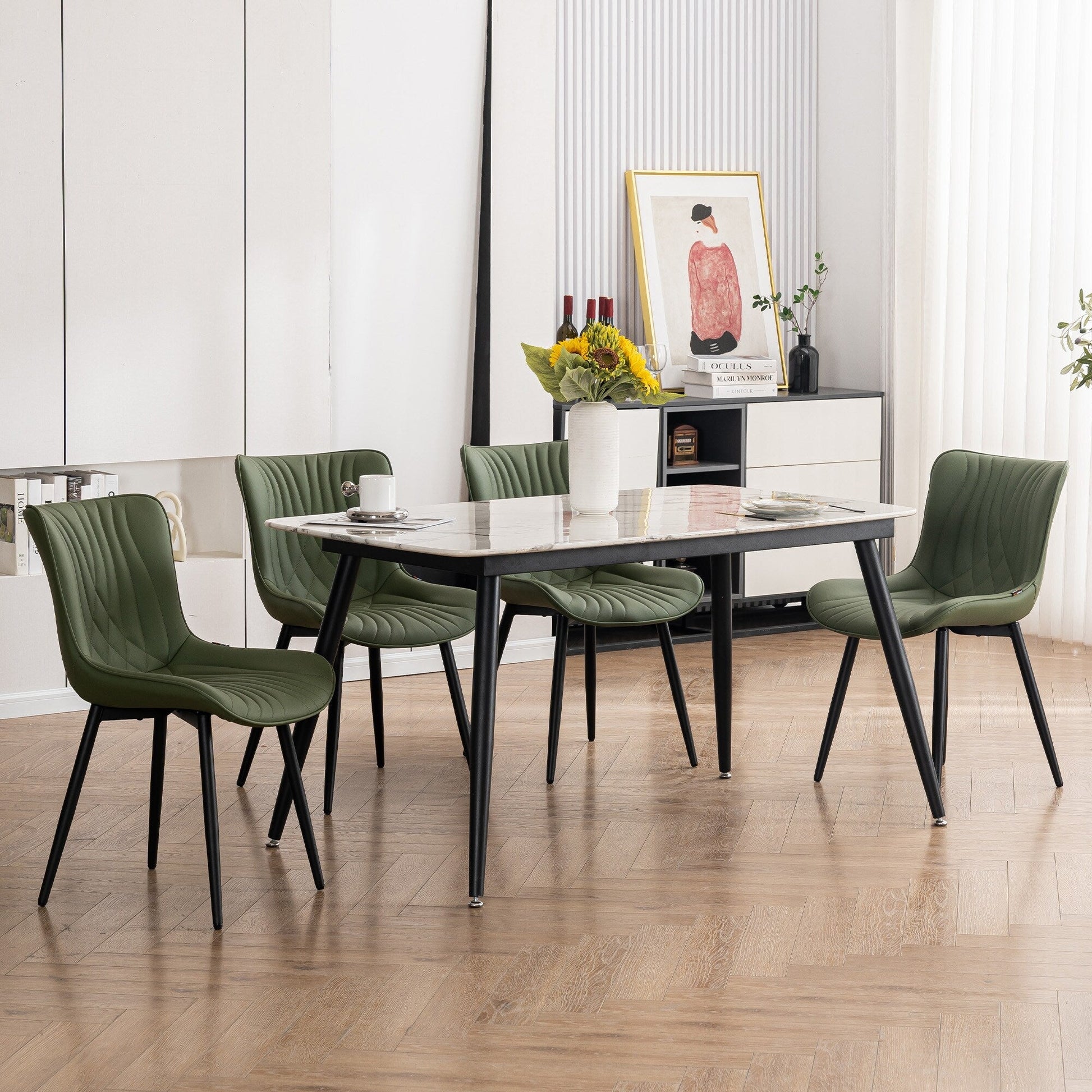 💞Entourez votre espace repas d'un ensemble de chaises qui non seulement donneront vie à votre décoration, mais s'adapteront également aux courbes de votre corps pour un confort accru. Avec leur joli motif queue de baleine, leurs assises en cuir et leur structure métallique robuste pour une meilleure durabilité, les matériaux multiples de cette chaise de salle à manger accentuent le style contemporain général. Sans accoudoirs, nos chaises de salle à manger sophistiquées s'intègrent facilement dans les espaces vides de la table pour gagner de la place et représentent l'équilibre parfait entre un style époustouflant et une fonctionnalité pratique. Ces chaises de cuisine et de salle à manger sont polyvalentes et conviennent à une variété d'environnements, y compris les salles à manger, les cuisines, les salons, les chambres d'amis, les salles d'attente et même les maisons de vacances. Elles peuvent être utilisées comme chaises de lecture confortables, coussins d'angle confortables, chaises de maquillage, chaises de salon, etc.