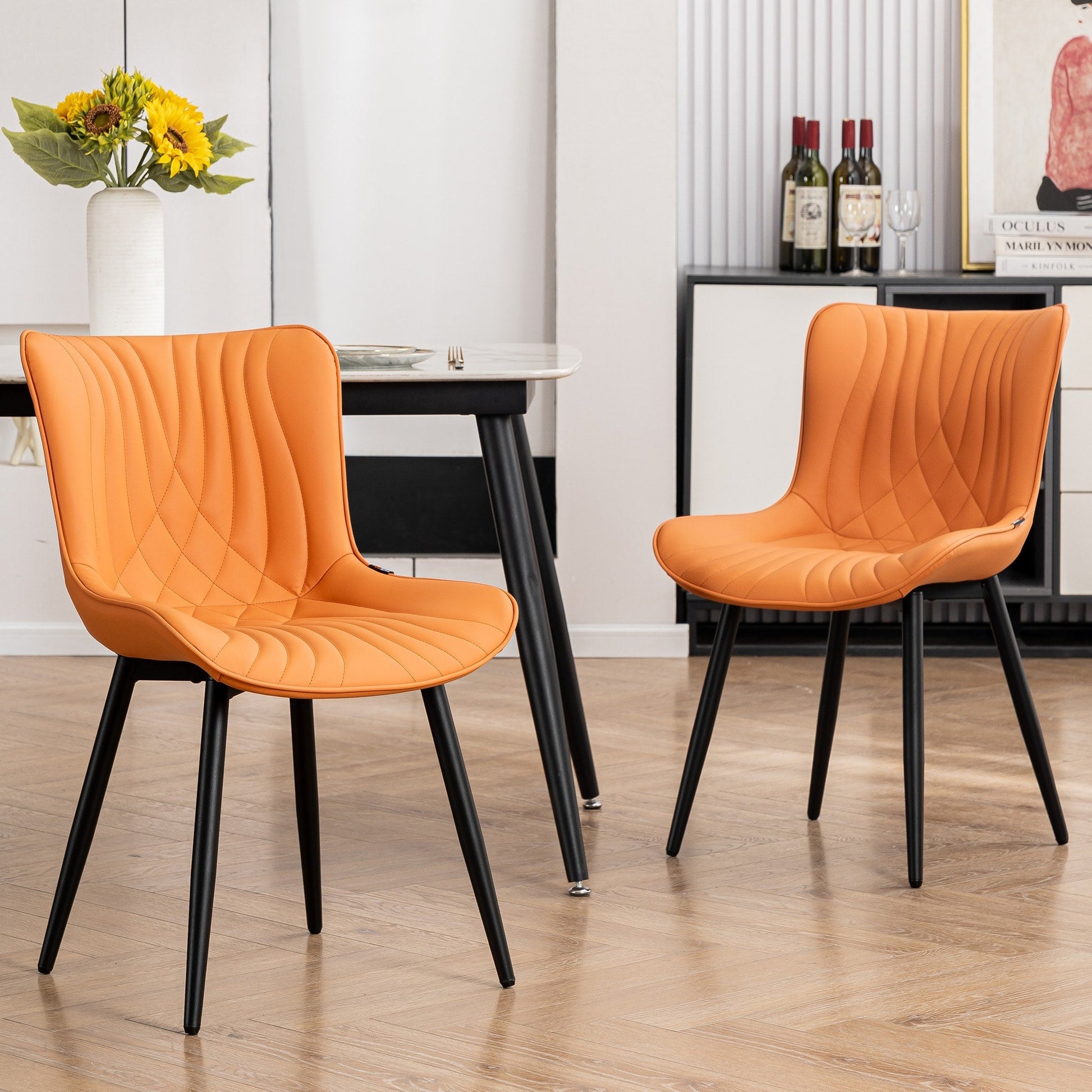 💞【Confortable et élégant】: Les chaises de salle à manger en cuir ont un club de fans qui sont follement amoureux de celles-ci. Ceux qui se rassemblent autour de la table pour un repas délicieux et une conversation animée ne tarissent pas d'éloges sur le confort de ces chaises. Vos invités vous supplieront de les inviter à nouveau juste pour profiter de ce confort luxueux et de l'ambiance magnifique de votre pièce.