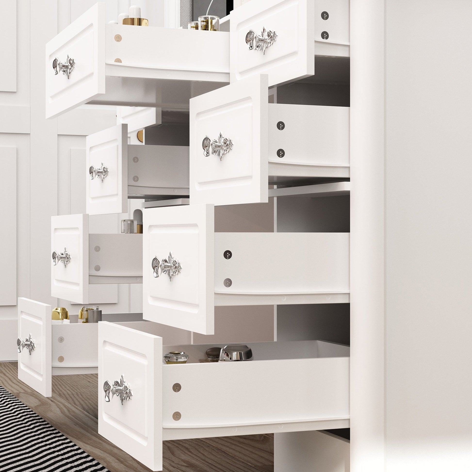 Conception des tiroirs : Les tiroirs sont équipés de coulisses silencieuses à montage inférieur blanches de 14 pouces pour un fonctionnement fluide et silencieux.