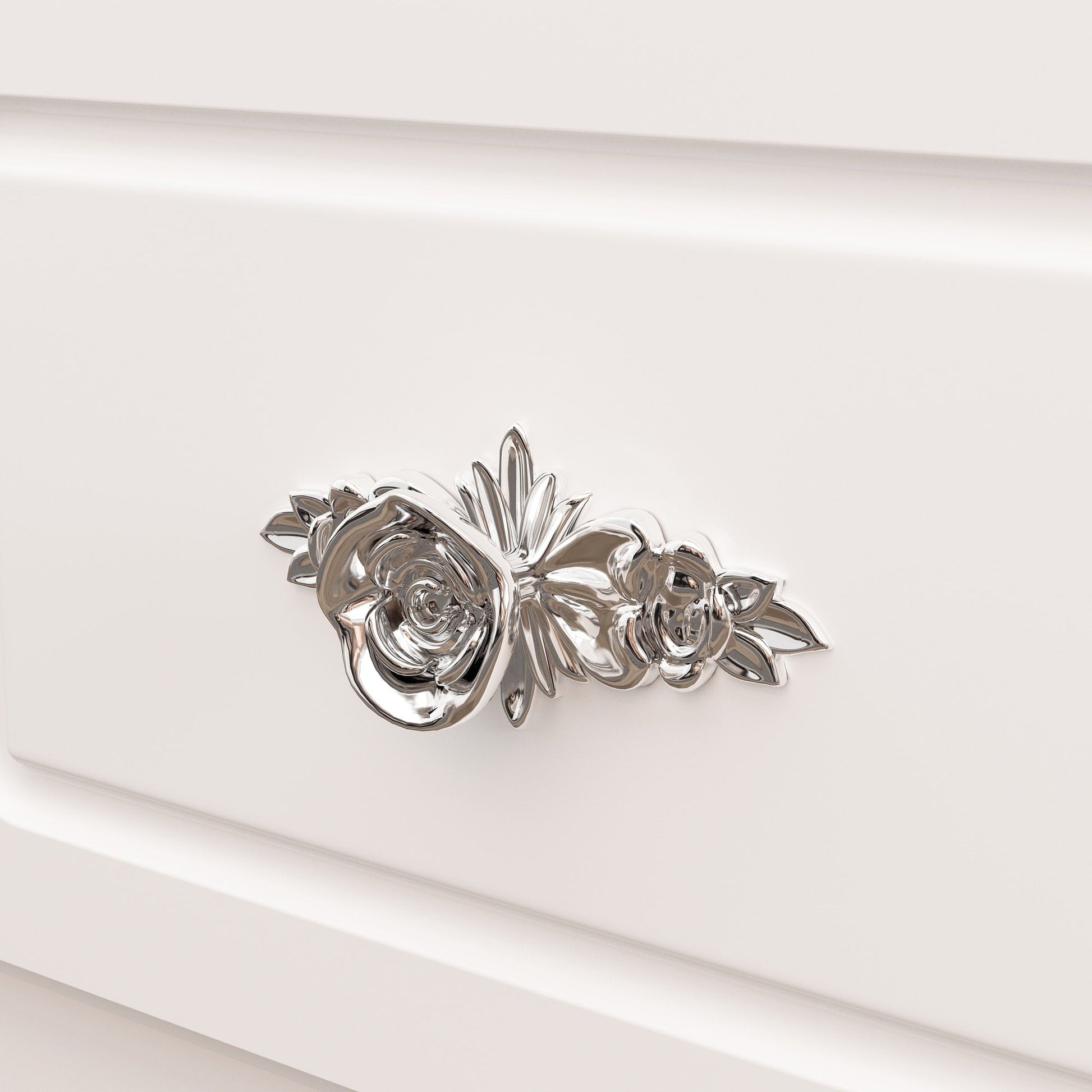 Poignées : Rehaussées de poignées métalliques argentées et or rose, ajoutant une touche de sophistication.