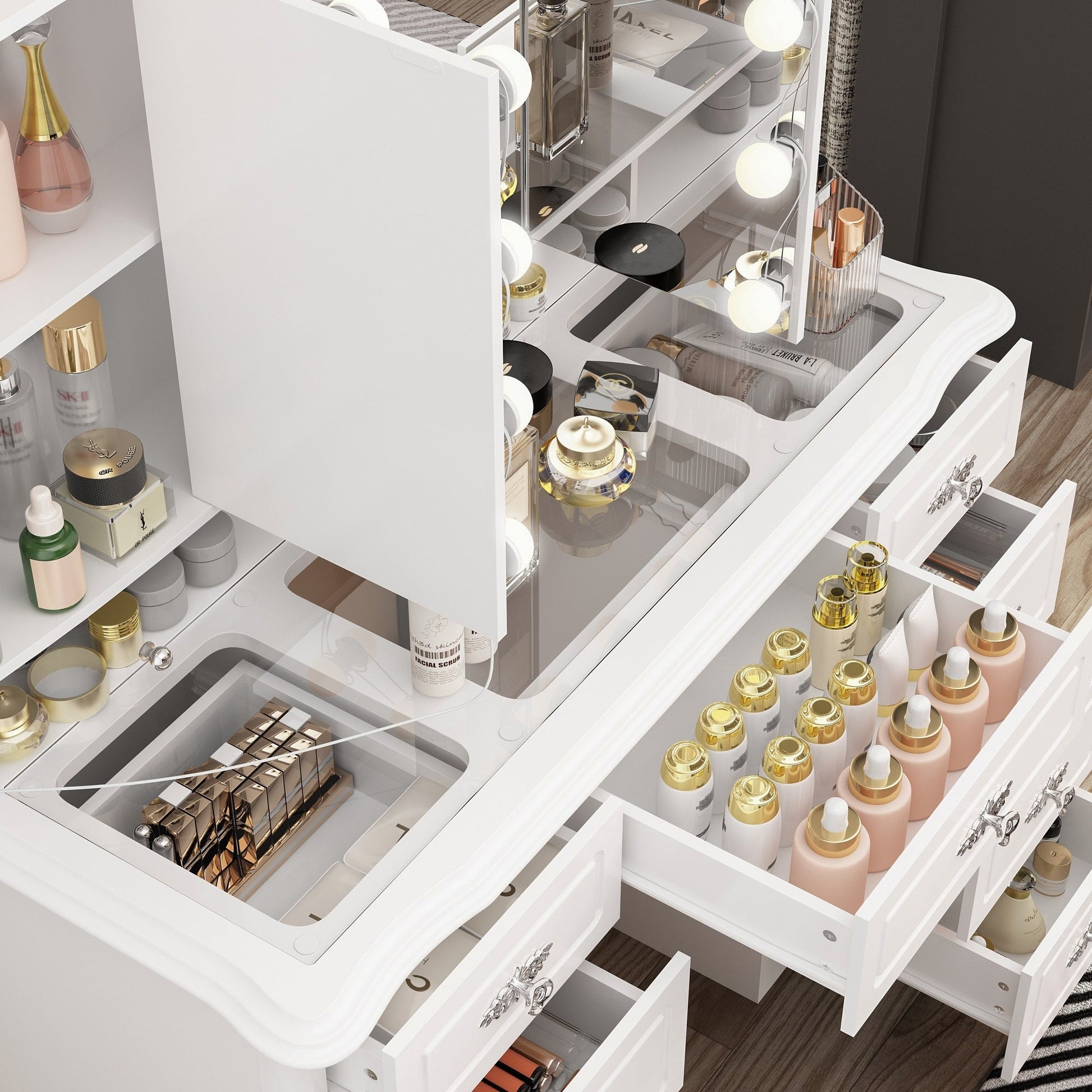 Note : Le tabouret n’est pas inclus. Trouvez le tabouret idéal séparément pour compléter votre havre de beauté.