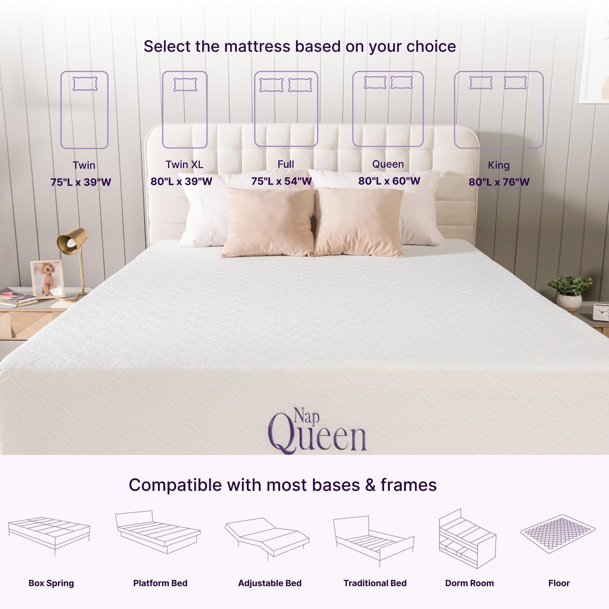 Découvrez le summum de la technologie du sommeil du XXIe siècle avec le matelas en mousse à mémoire de forme avec gel rafraîchissant NapQueen Elizabeth 8'. Ce matelas offre le mélange parfait de douceur et de fermeté, grâce à ses couches de mousse à mémoire de forme graduées qui procurent un soutien optimal à vos articulations, vos vertèbres et vos muscles. Avec une couche supérieure infusée de gel rafraîchissant et des orifices de ventilation, vous pouvez dire adieu à la surchauffe et bonjour à une nuit de sommeil confortable. De plus, il est certifié CertiPUR-US, garantissant l'absence de COV, de métaux lourds et de retardateurs de flamme toxiques. Améliorez votre expérience de sommeil avec NapQueen Elizabeth.