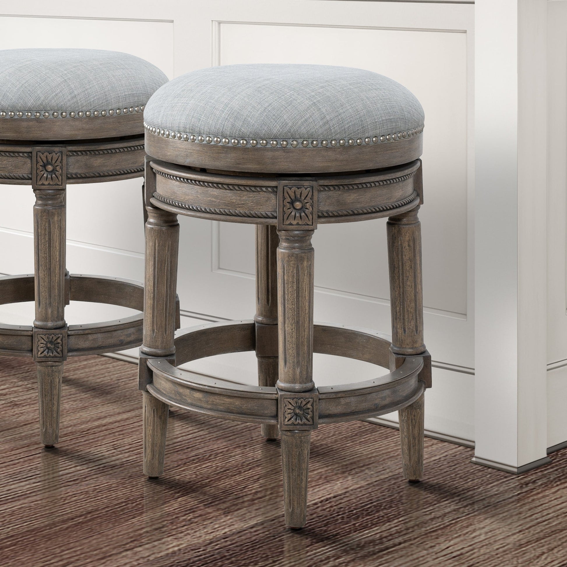 Apportez une touche de sophistication confortable à votre salle à manger ou à votre salle de loisirs avec notre tabouret de bar sans dossier. Notre tabouret de hauteur comptoir de 26 po (66 cm) pivote à 360 degrés, possède des repose-pieds en métal et des clous à tête plate appliqués à la main pour rehausser son design. Aucun outil n'est nécessaire pour le montage ; ce tabouret est l'ajout parfait à n'importe quel bar ou table. Le montage est un jeu d'enfant, aucun outil n'est requis. Parfait pour les comptoirs de cuisine, ce tabouret mesure 66 cm de haut.