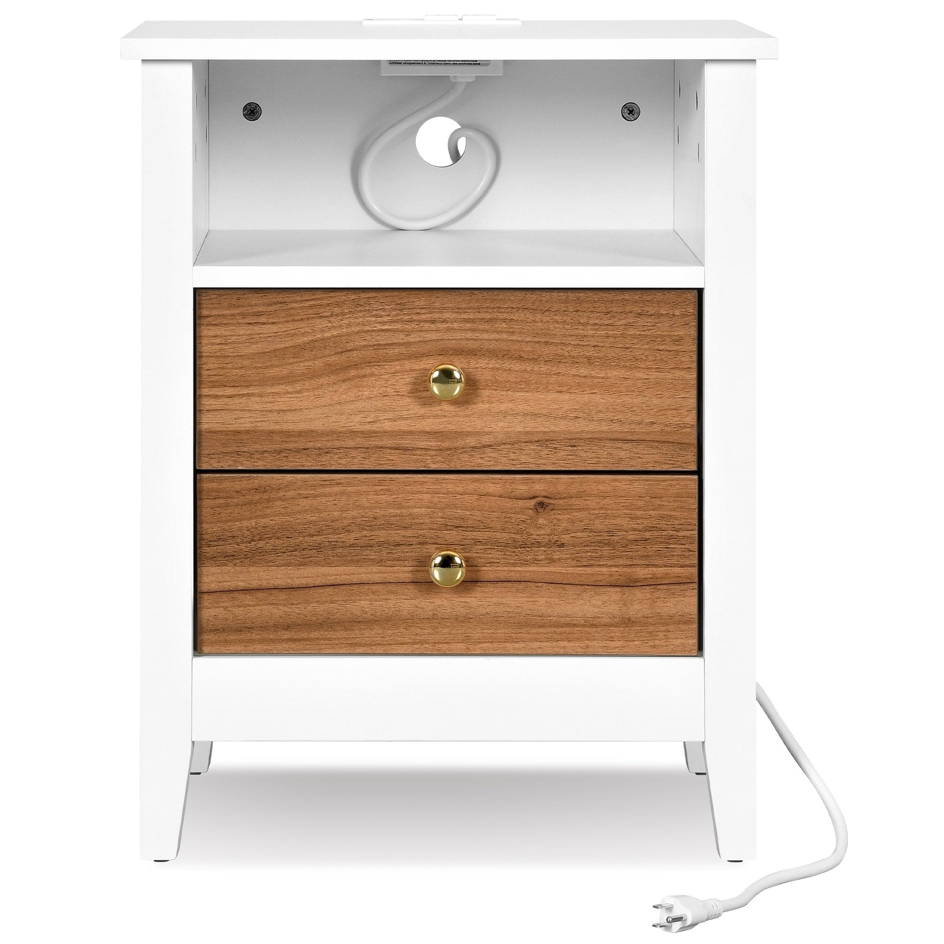 Ensemble de 2 tables de chevet avec station de recharge, table d'appoint avec 2 tiroirs, ports USB et prises électriques, pour lit.