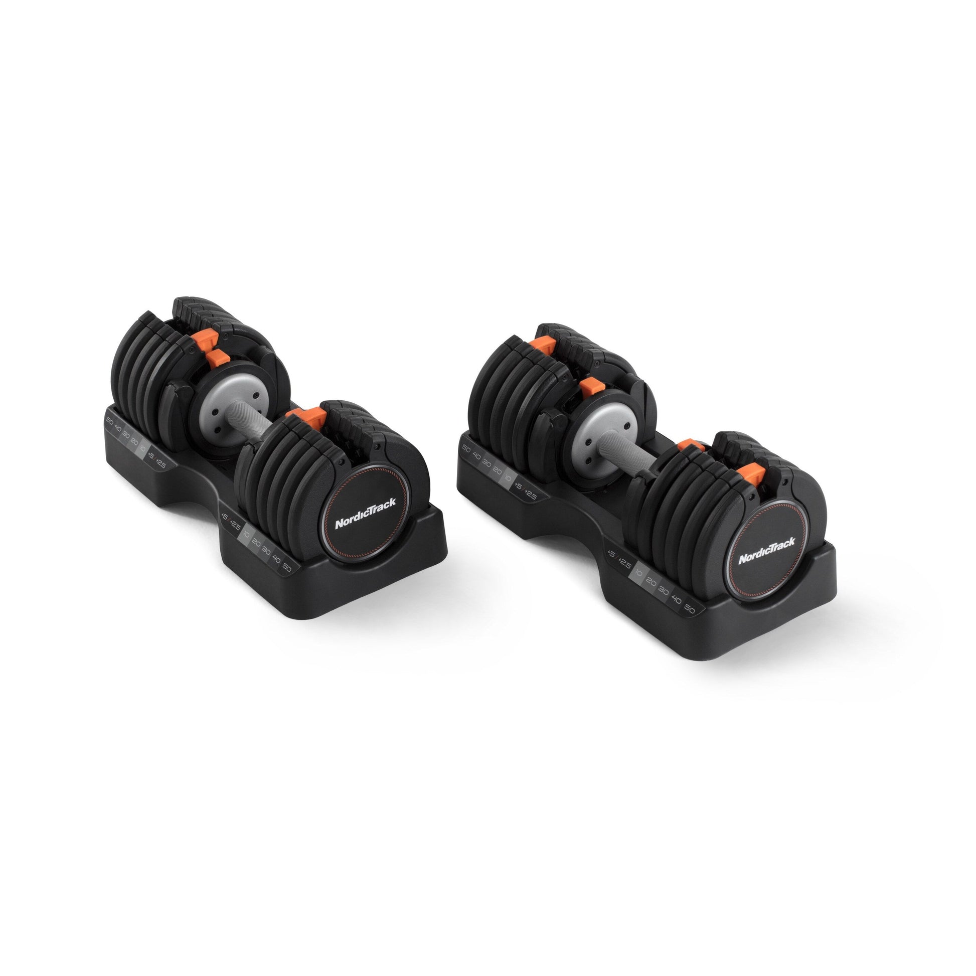 Vivez une séance d'entraînement corps entier : Profitez d'un entraînement de musculation complet dans le confort de votre foyer avec les haltères Select-a-Weight de NordicTrack. Avec un poids maximal de 25 kg (55 lbs) chacun, ces haltères polyvalents peuvent remplacer 30 haltères dans un ensemble compact et facile à utiliser. Choisissez facilement entre 4,5 kg (10 lbs) et 25 kg (55 lbs) grâce à un système de sélection de poids fluide, et profitez d'un rangement pratique dans des bacs moulés sur mesure clairement identifiés par le poids. Découvrez les entraînements iFit : Téléchargez l'application iFit et commencez votre essai gratuit pour diffuser des séances d'entraînement vidéo à la demande directement sur votre tablette ou votre smartphone. Avec iFit, des entraîneurs professionnels vous guideront à travers une variété d'entraînements de musculation à votre rythme, chez vous. Remplacez 30 haltères : Chaque haltère Select-a-Weight offre 15 options de poids, vous permettant de passer de 4,5 kg (10 lbs) à 25 kg (55 lbs) par incréments de 2,5 kg (5 lbs) et 1,1 kg (2,5 lbs). Remplacez un rack entier d'haltères avec ces poids réglables compacts. Système de sélection de poids fluide : Ajustez vos haltères par incréments de 2,5 kg (5 lbs) ou 1,1 kg (2,5 lbs) pour trouver le poids idéal pour une variété d'exercices de musculation dans le confort de votre salle de sport personnelle – il suffit de soulever et de pousser l'onglet Select-a-Weight pour modifier facilement votre haltère. Bac de rangement adapté inclus : Lorsqu'elles ne sont pas utilisées, vos haltères réglables NordicTrack peuvent être rangées en toute sécurité dans des bacs moulés sur mesure clairement identifiés par le poids.